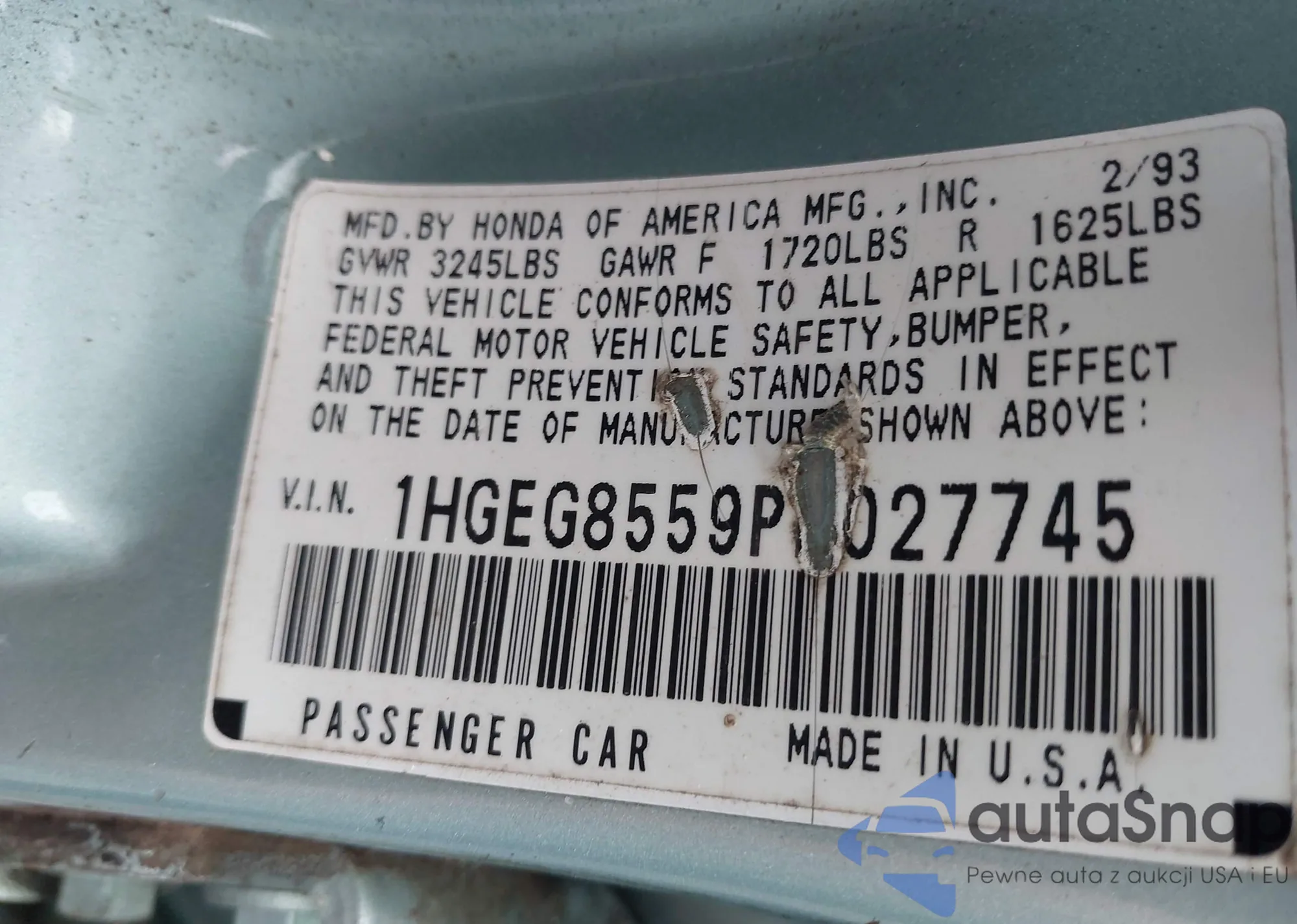 • VIN 1HGEG8559PL027745