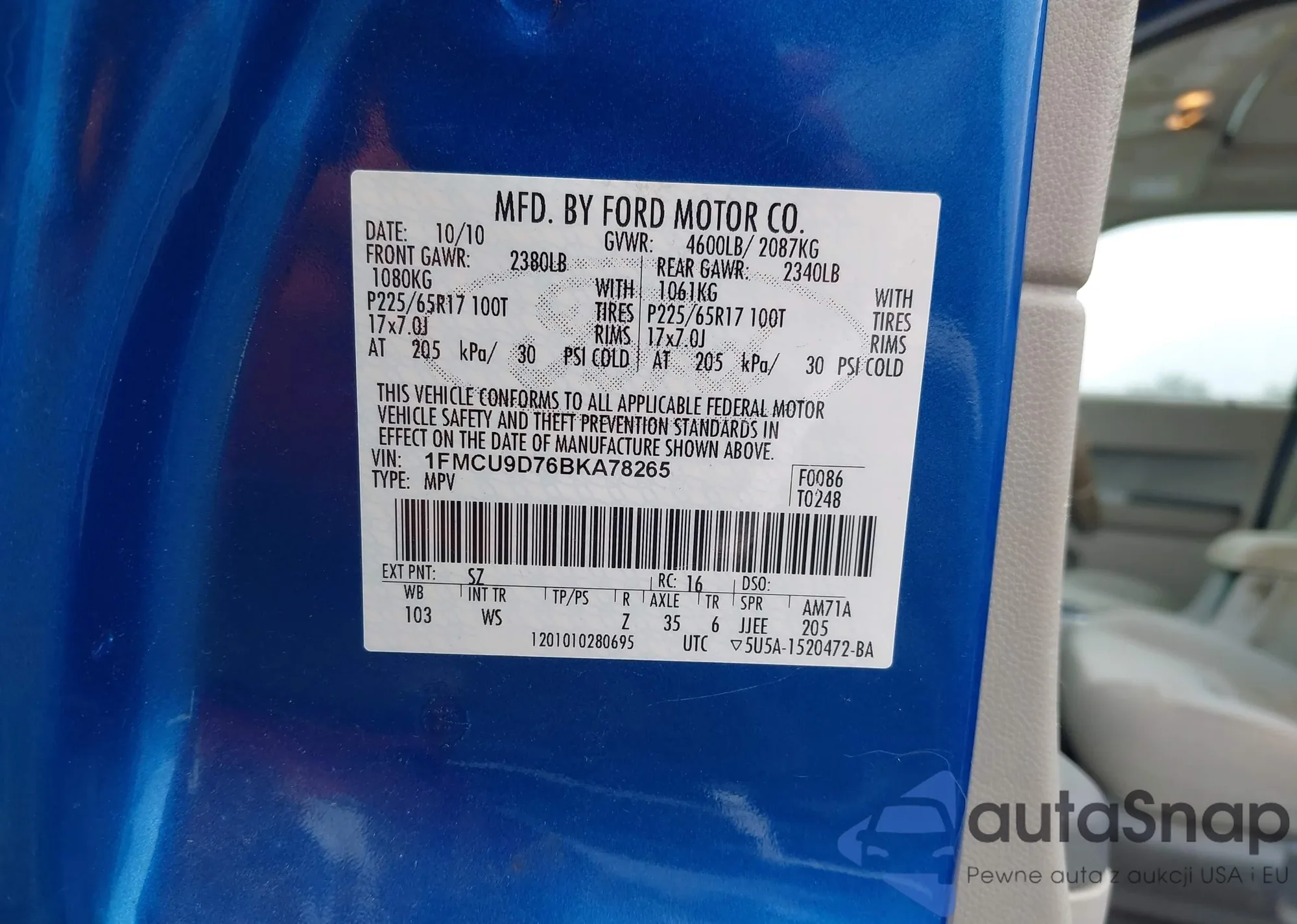 • VIN 1FMCU9EG5AKD17866