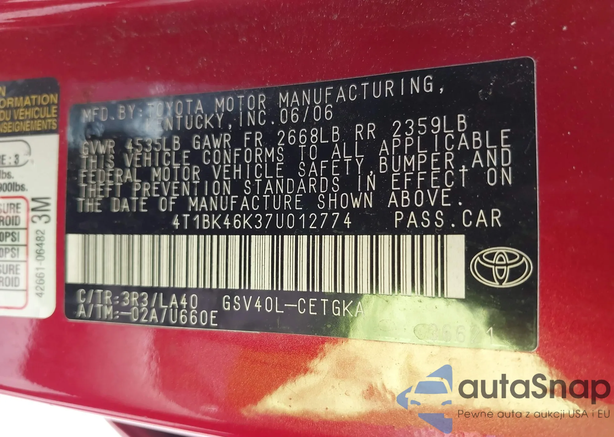 LOT: 42246148 VIN: 4T1BB46K49U093996