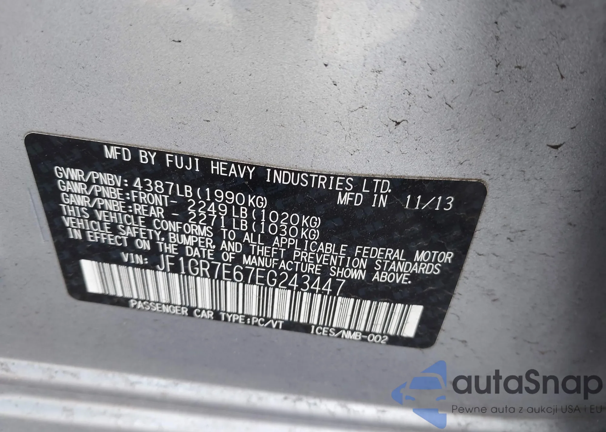 LOT: 42285569 VIN: 4S3BH635317309773
