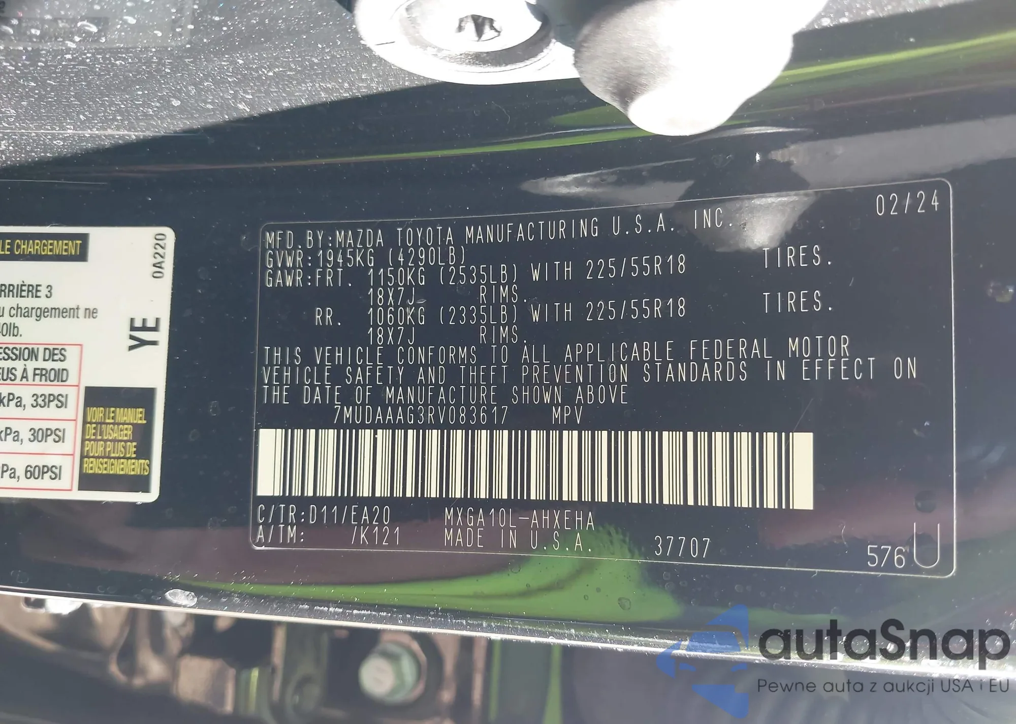 LOT: 41919029 VIN: 7MUDAAAG3RV083617
