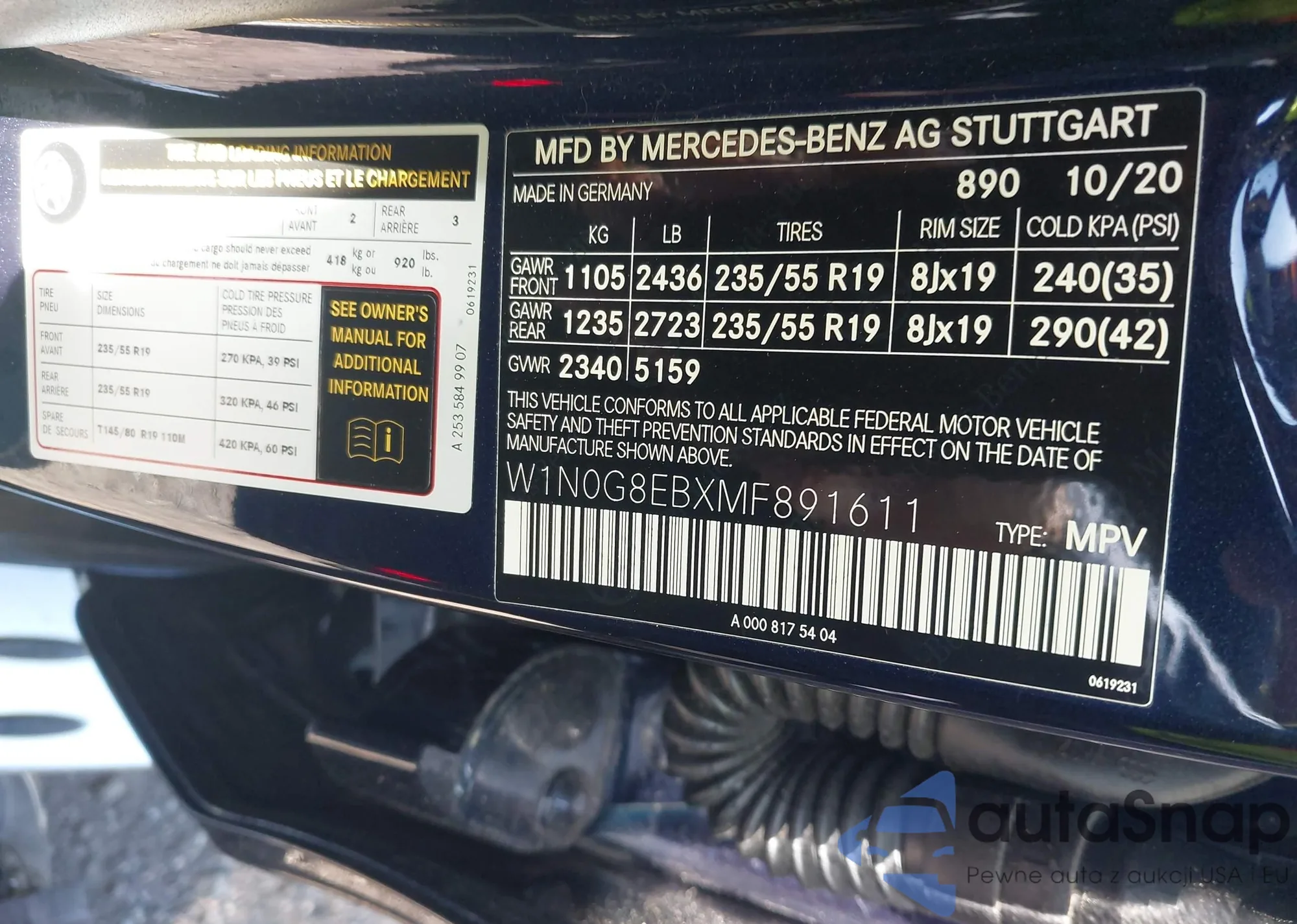• VIN W1N0G8EBXMF891611