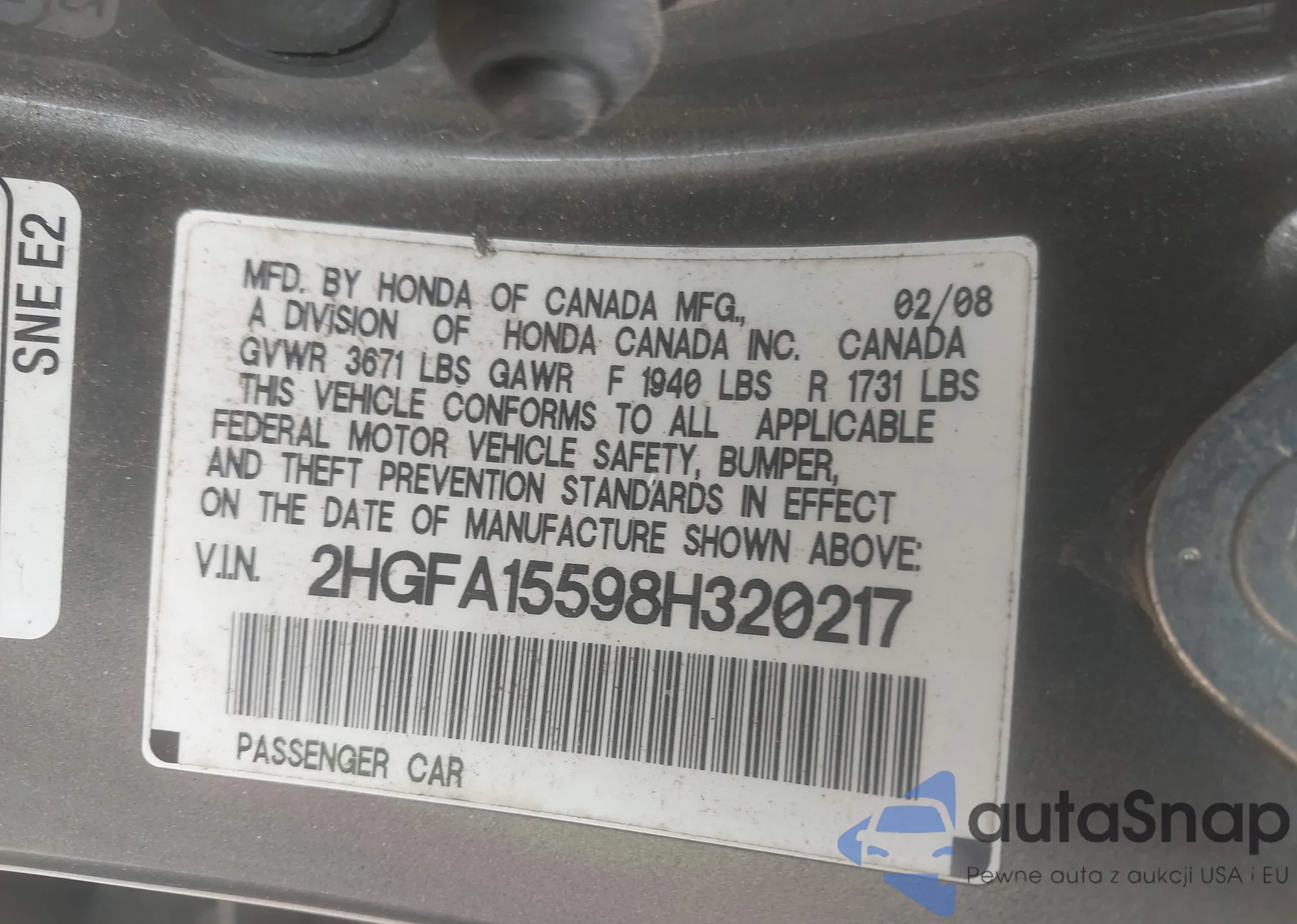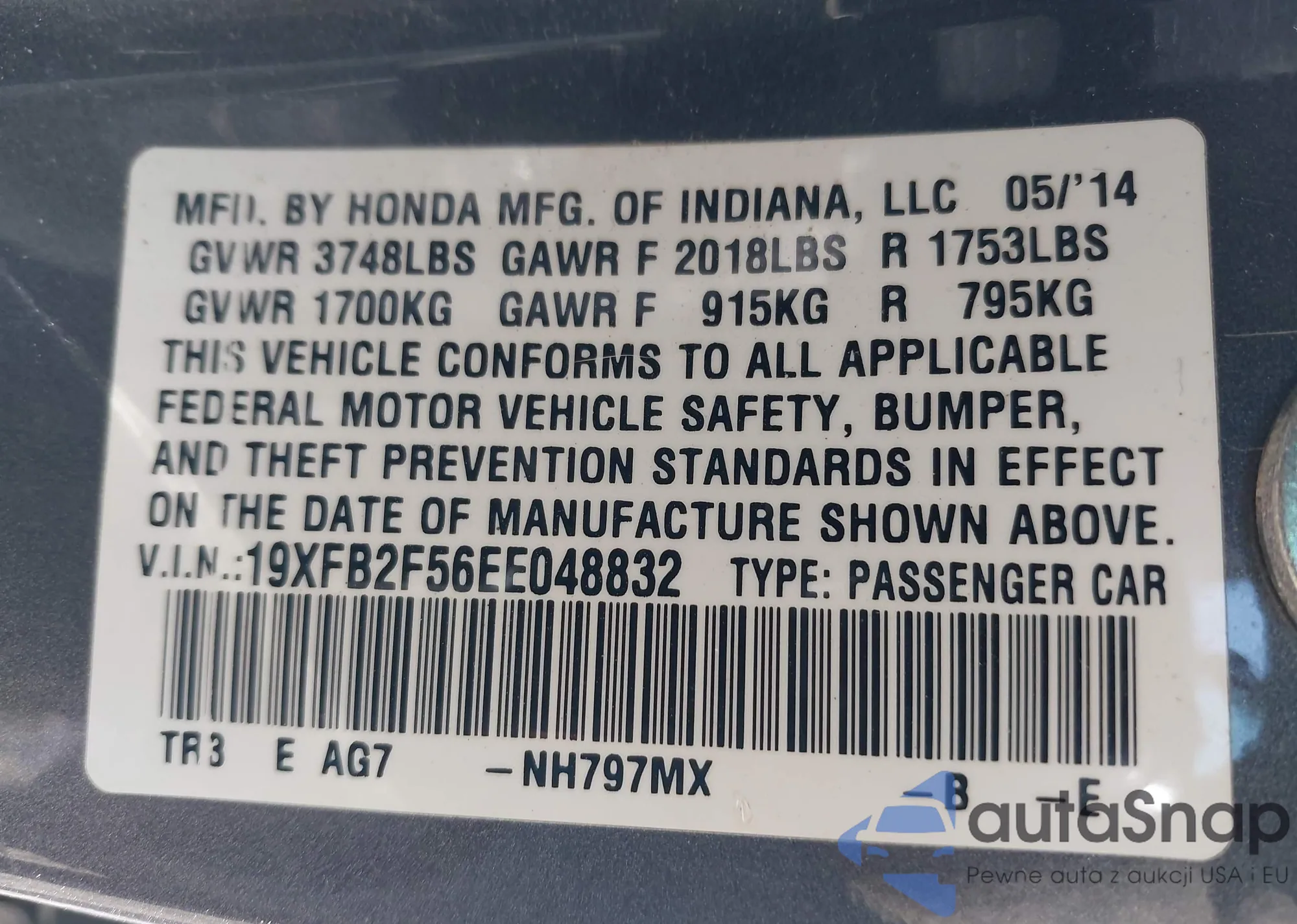 LOT: 42083387 VIN: 19XFB2F56EE048832