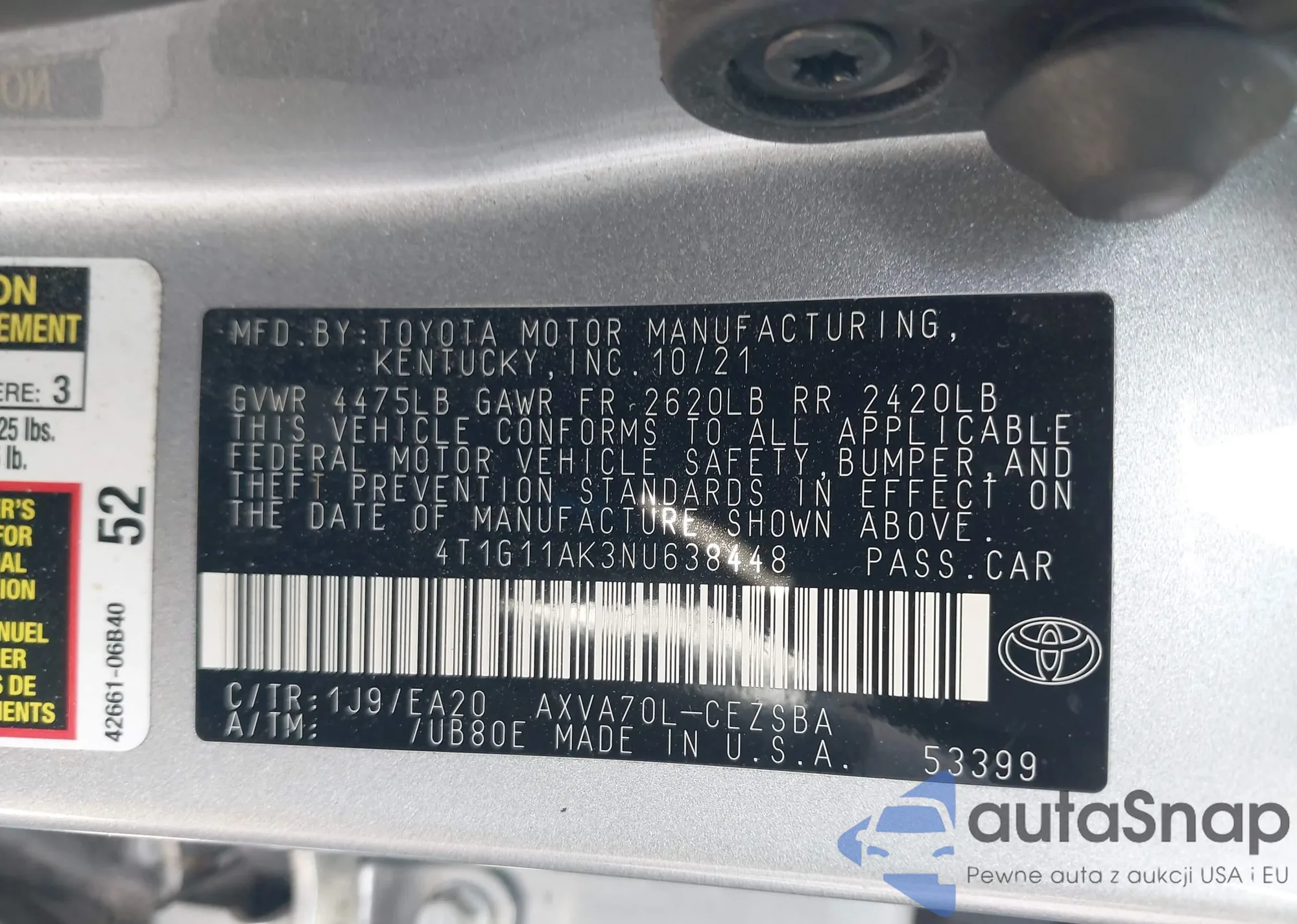 LOT: 42094686 VIN: 5YFEPMAE4NP289125