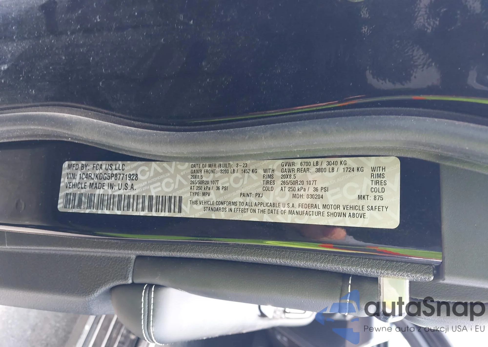 • VIN 1C4RJKDG5P8771928