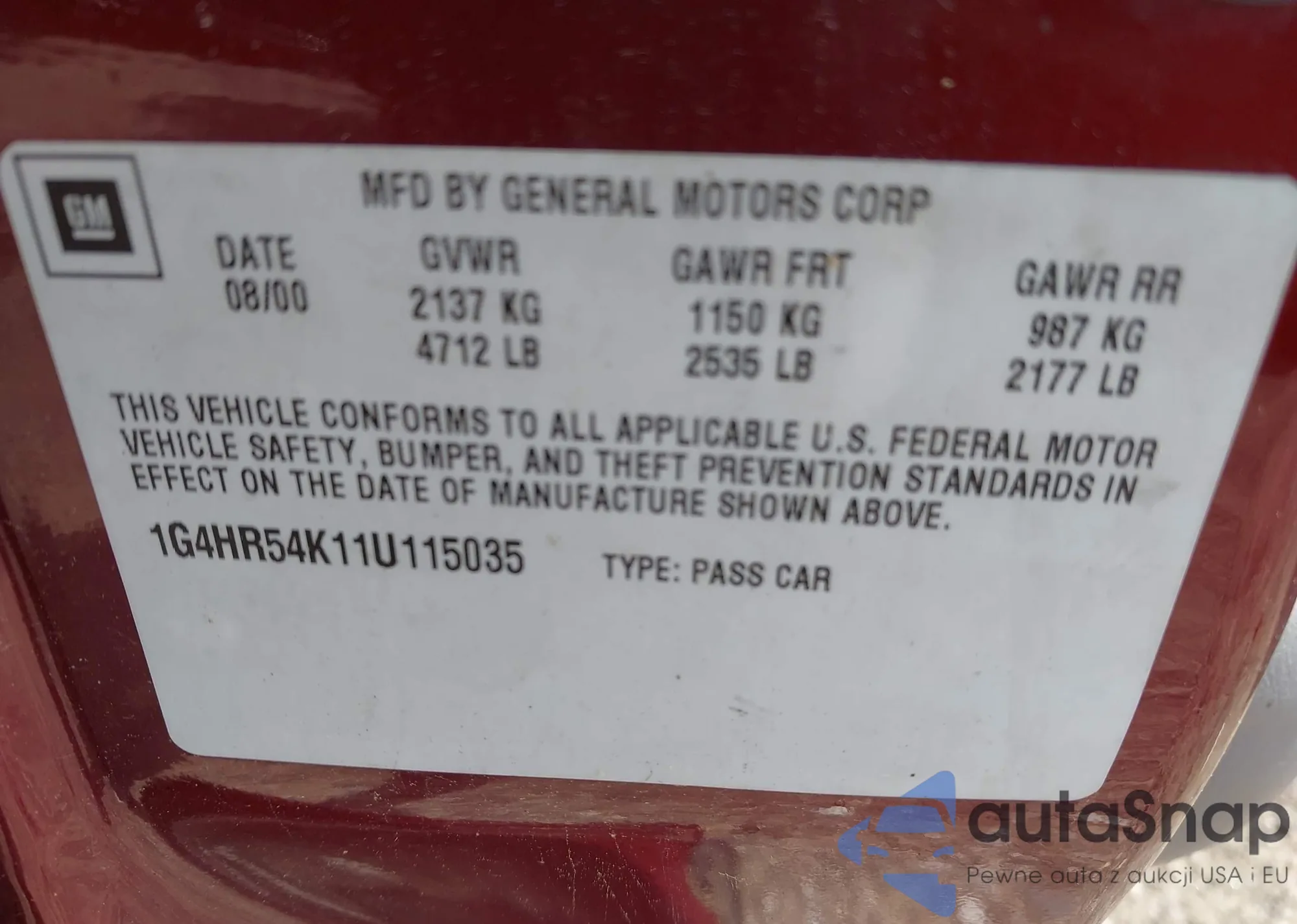 • VIN 1G4HR54K11U115035