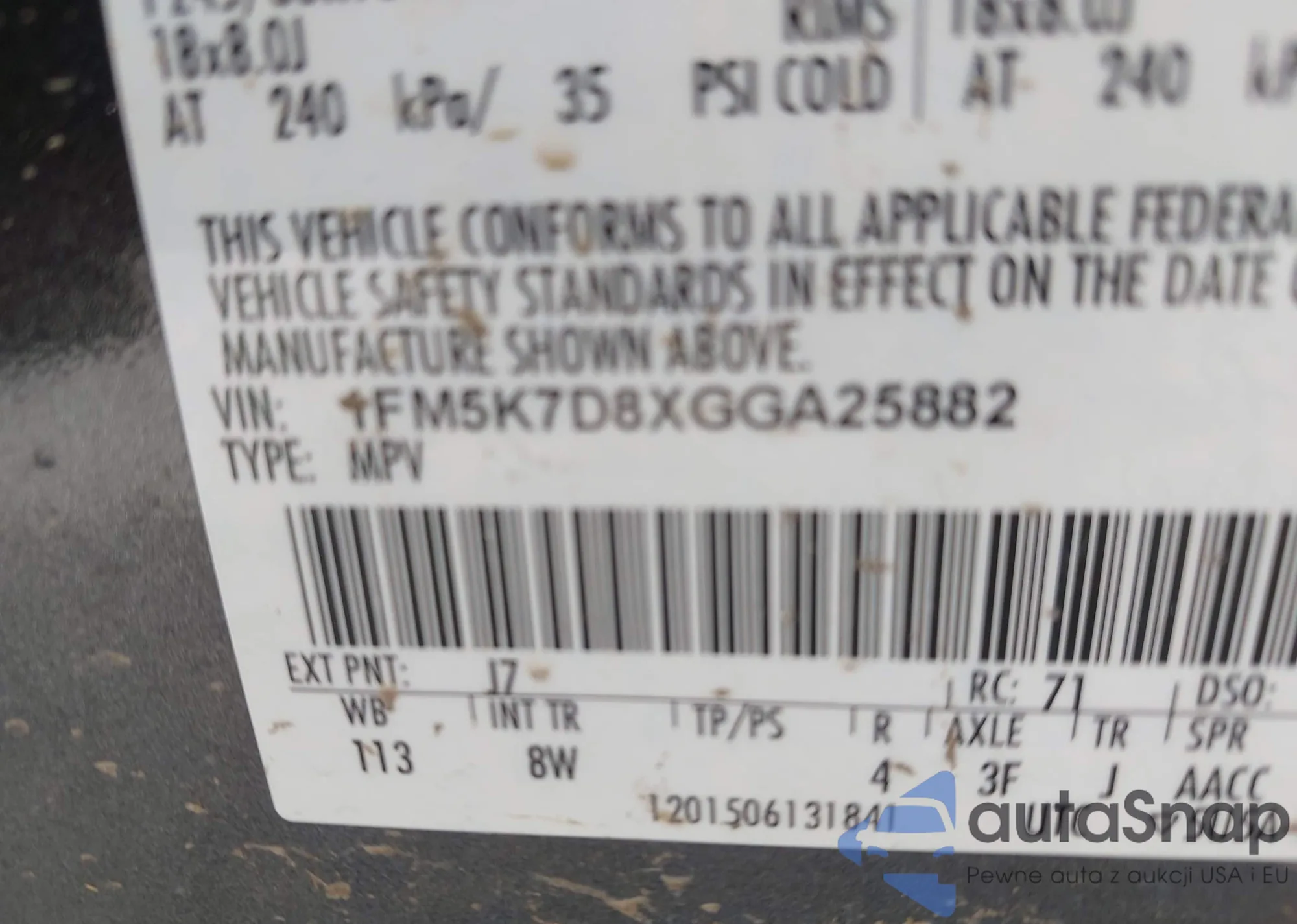 LOT: 42155735 VIN: 1FM5K7D8XGGA25882