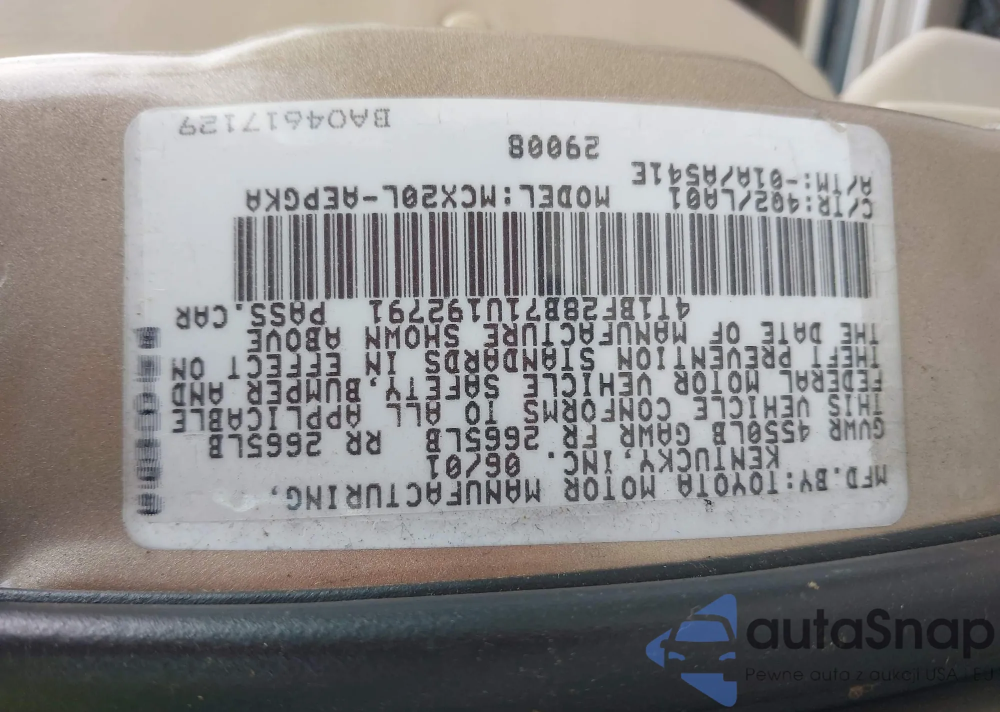 LOT: 42180729 VIN: 4T1BF28B71U192791
