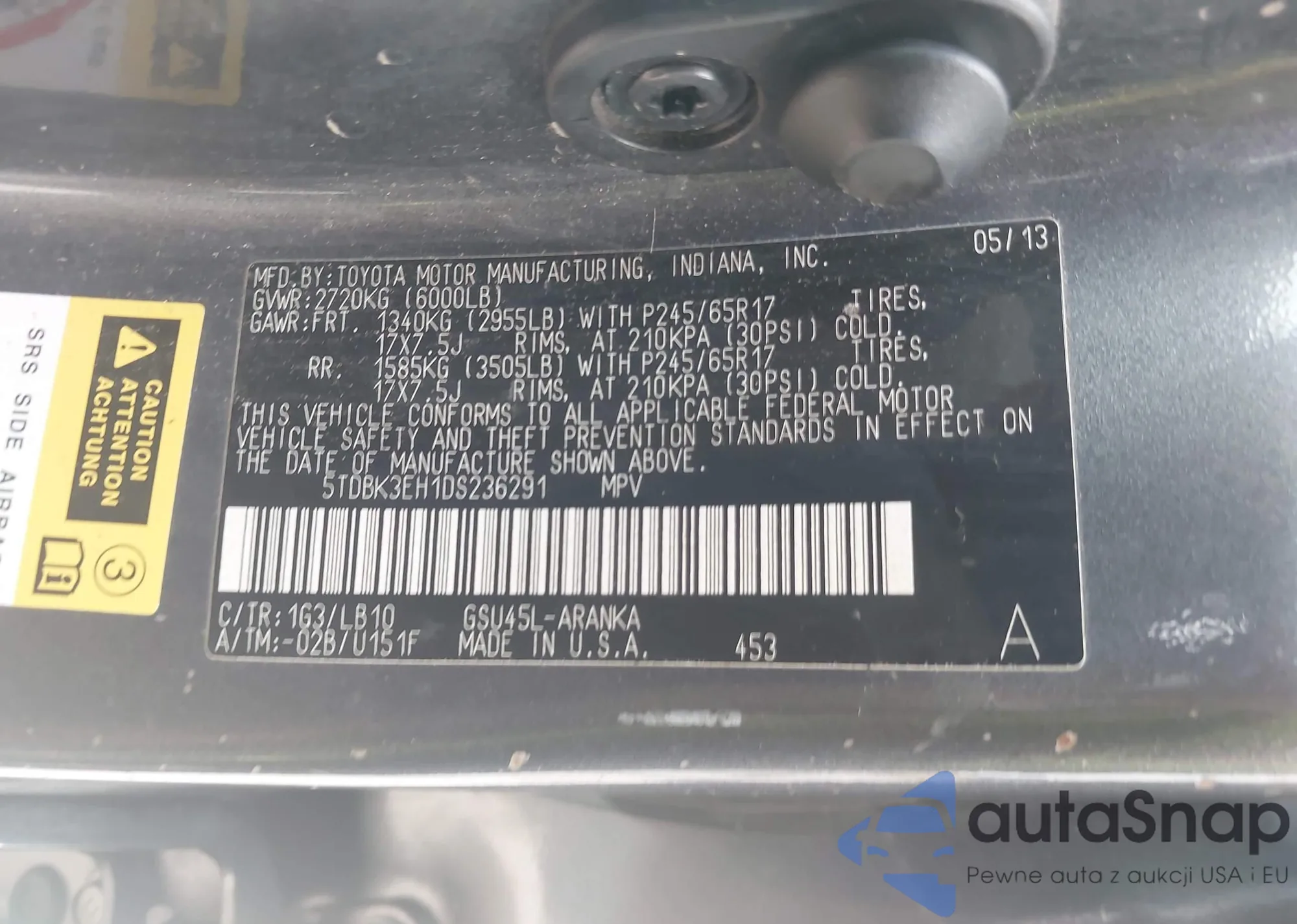 LOT: 42186971 VIN: 5TDBK3EH1DS236291