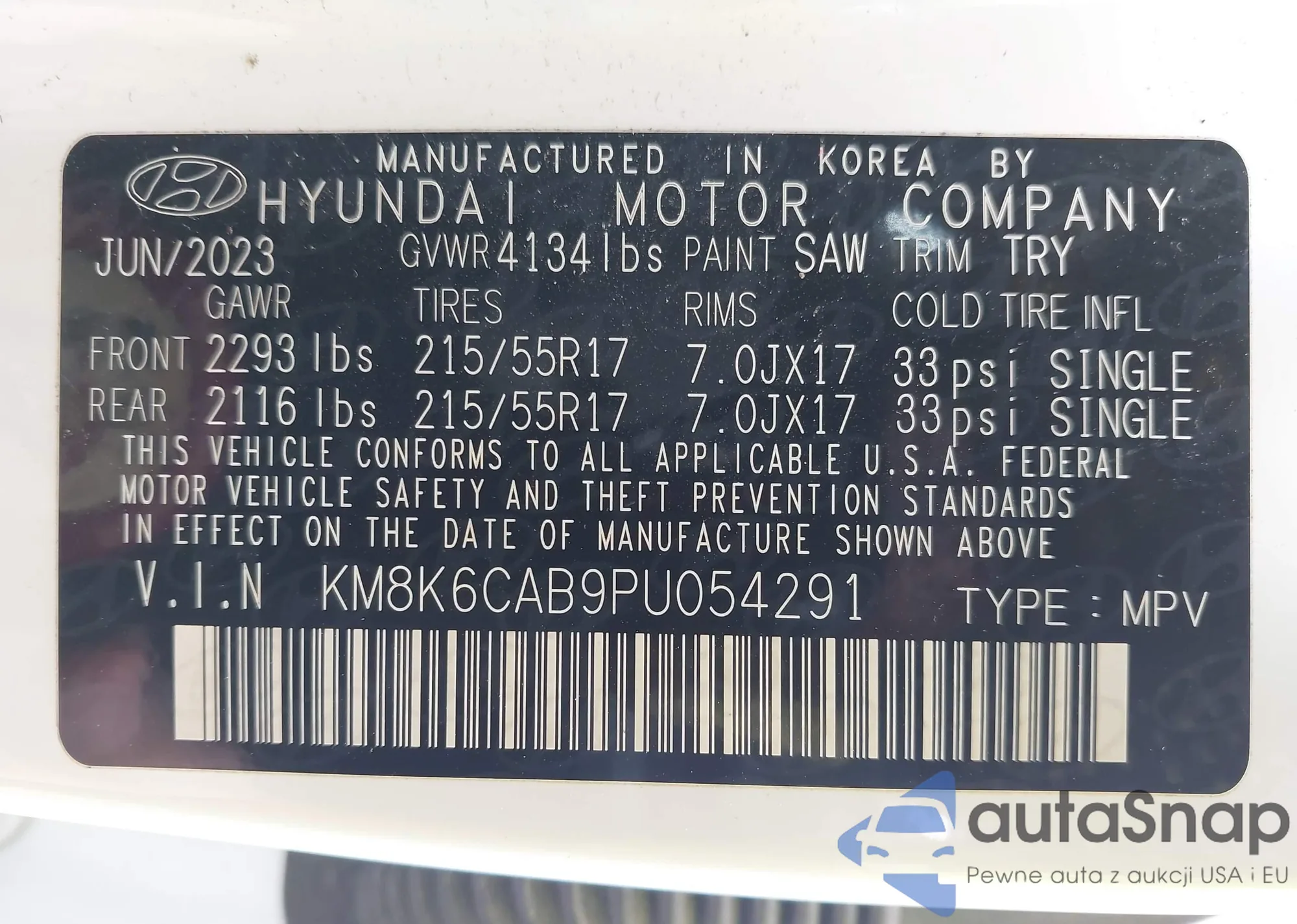 • VIN 5TDBK3EH1DS236291