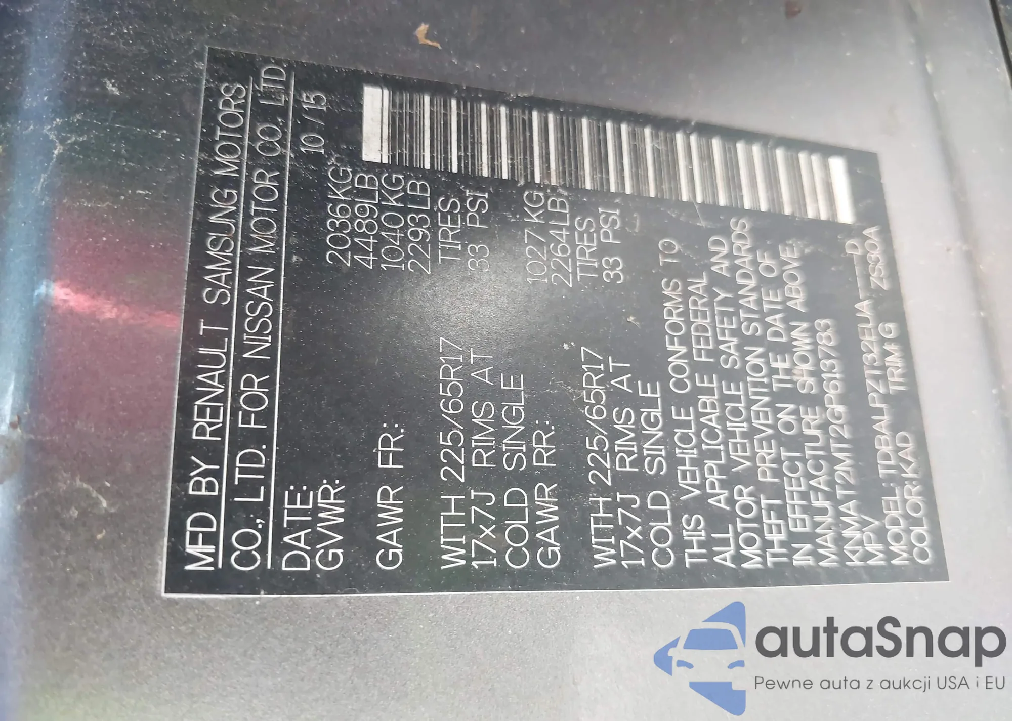 LOT: 42161292 VIN: WDBTJ65J65F126977
