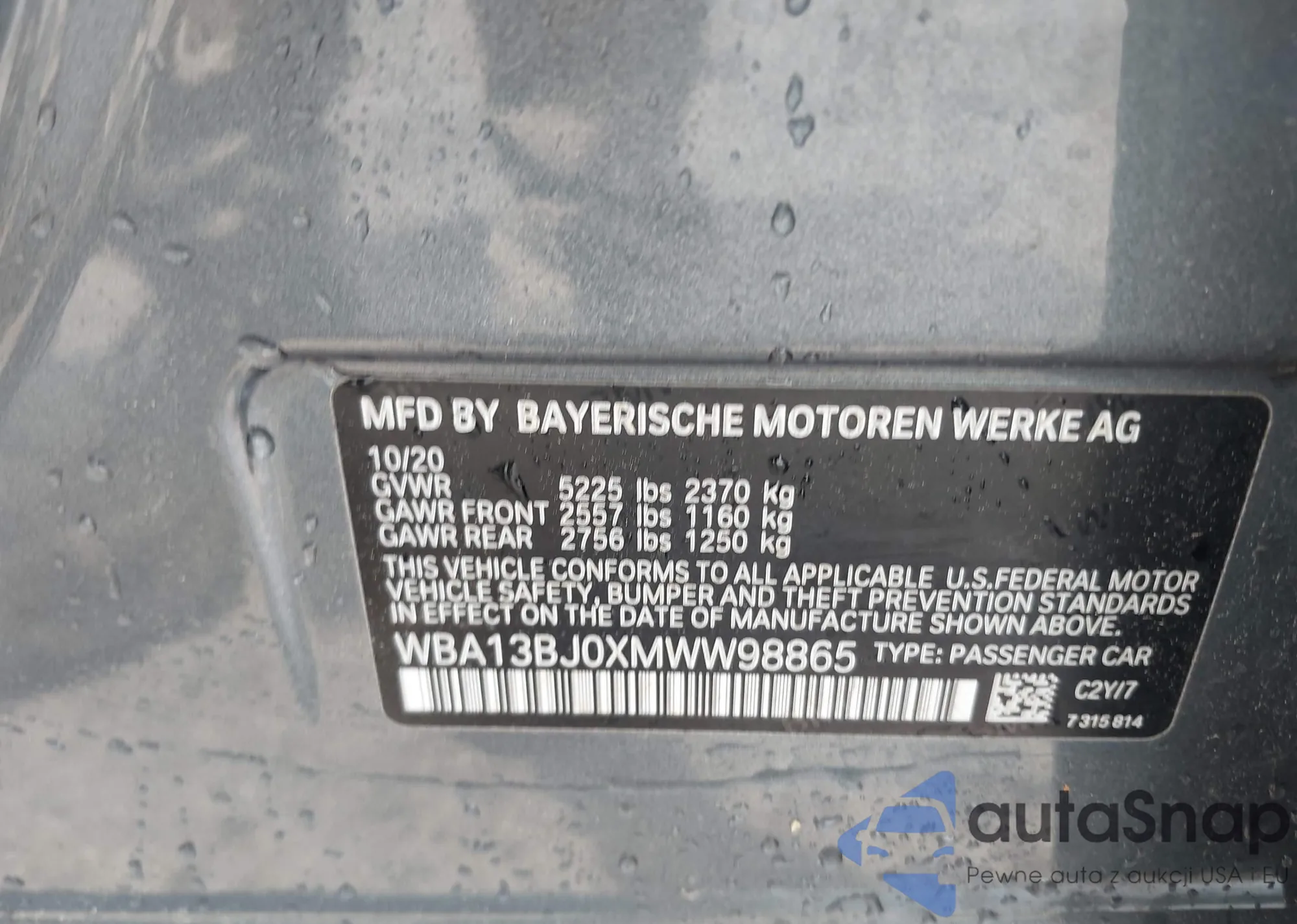 LOT: 42113426 VIN: WBA13BJ0XMWW98865