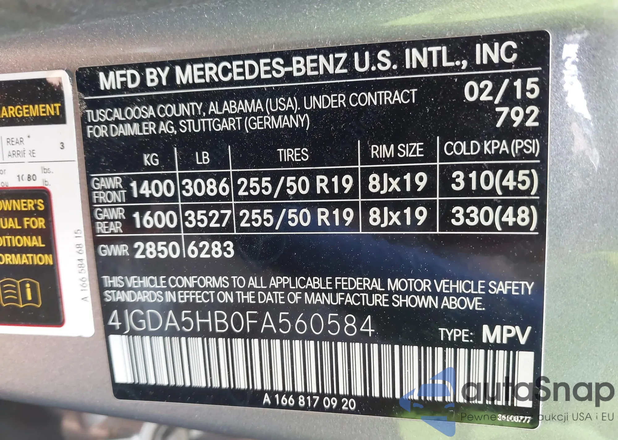 • VIN 4JGDA5HB0FA560584