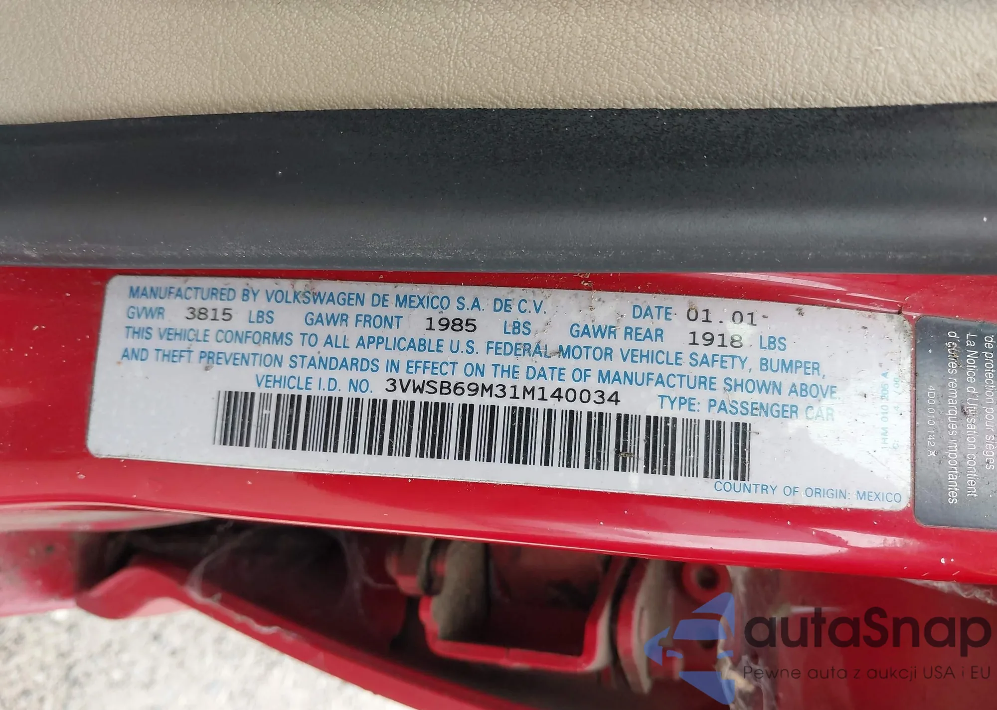 • VIN 3VWSB69M31M140034