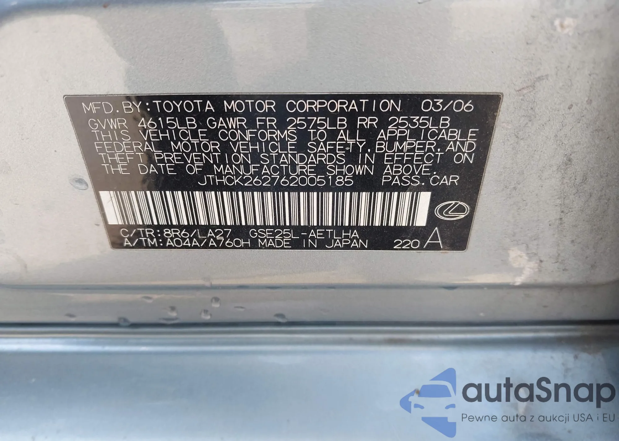 • VIN 4T1BF1FK5FU904848