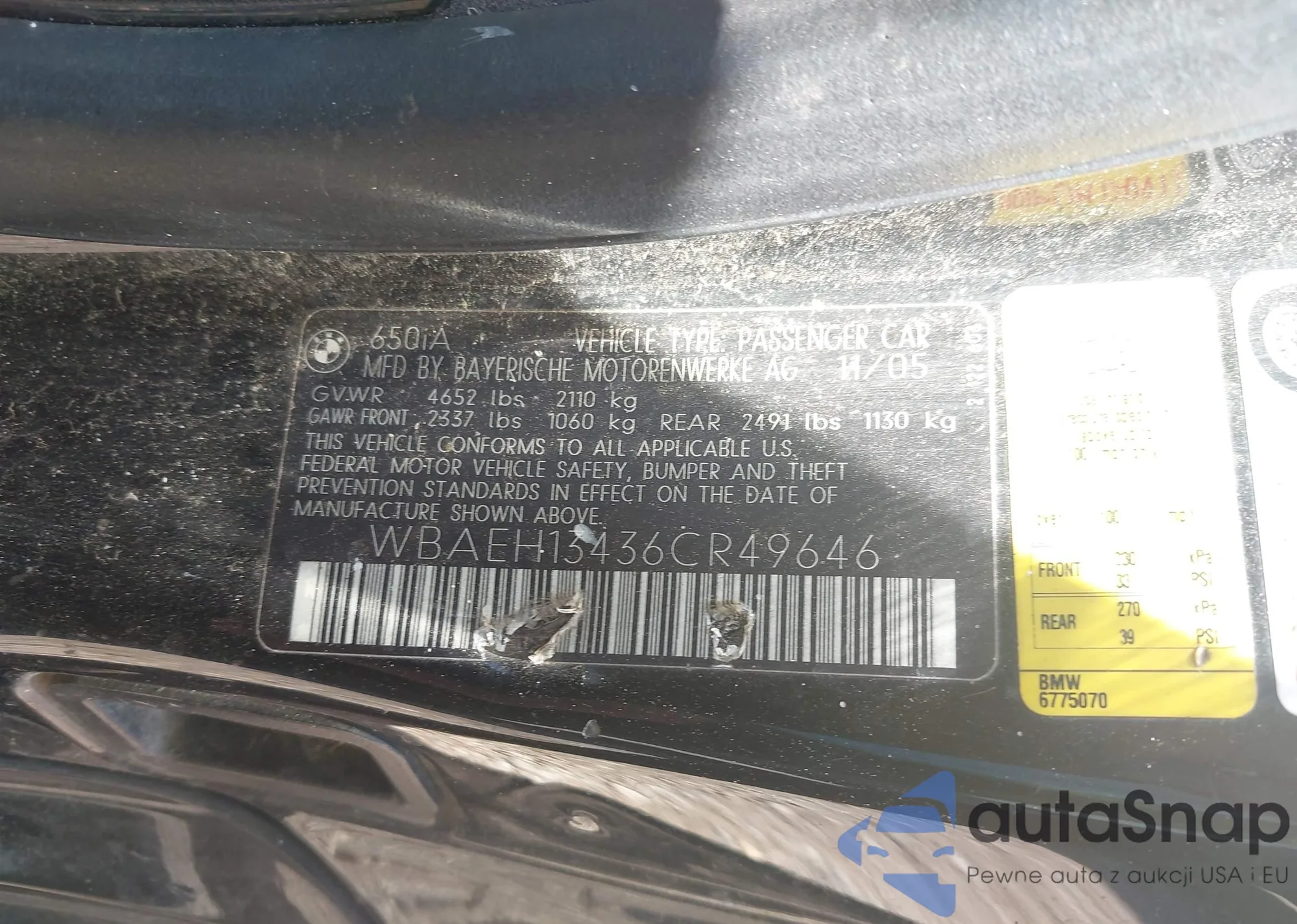 • VIN WBAEH13436CR49646