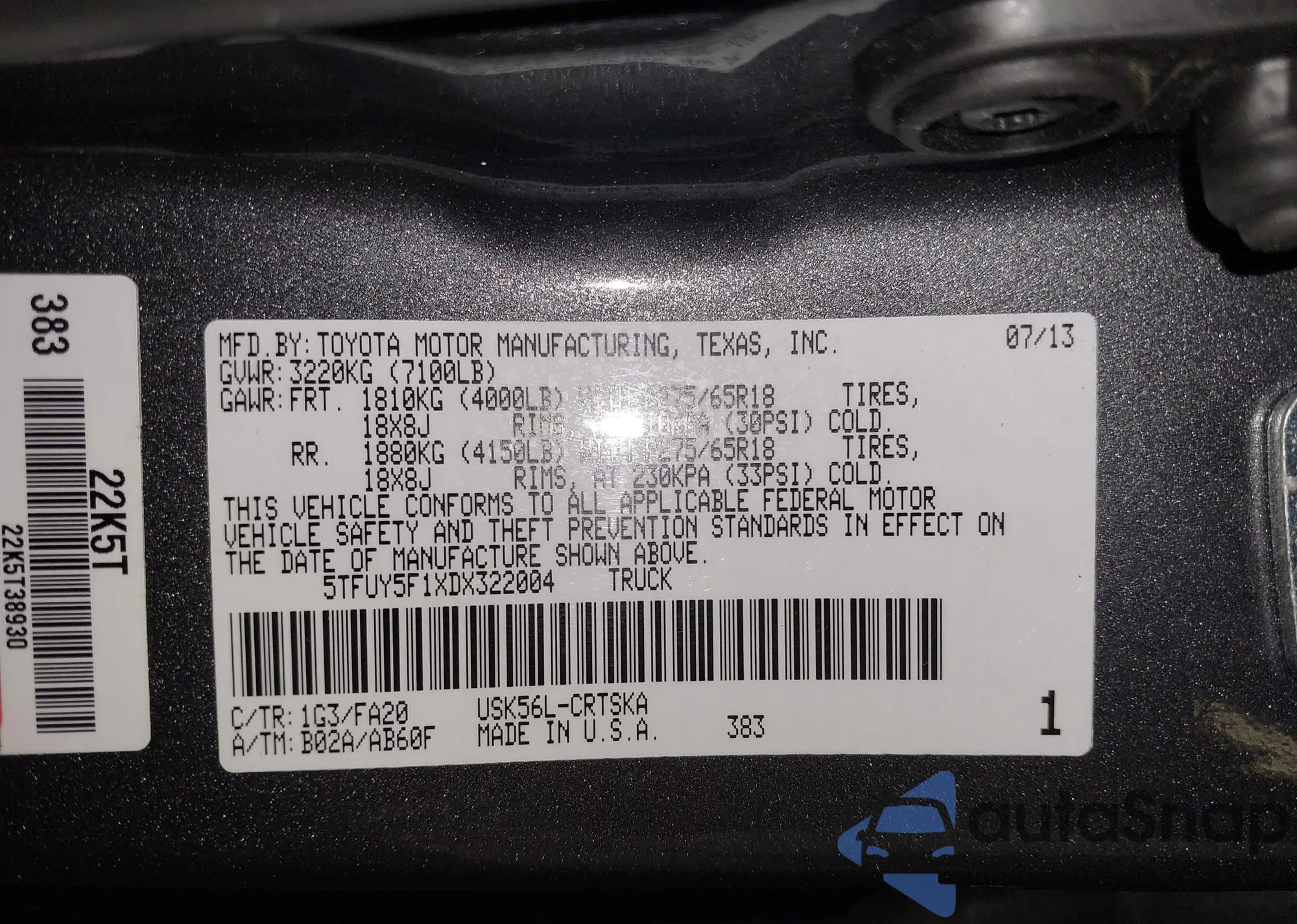 • VIN 5TFUY5F1XDX322004