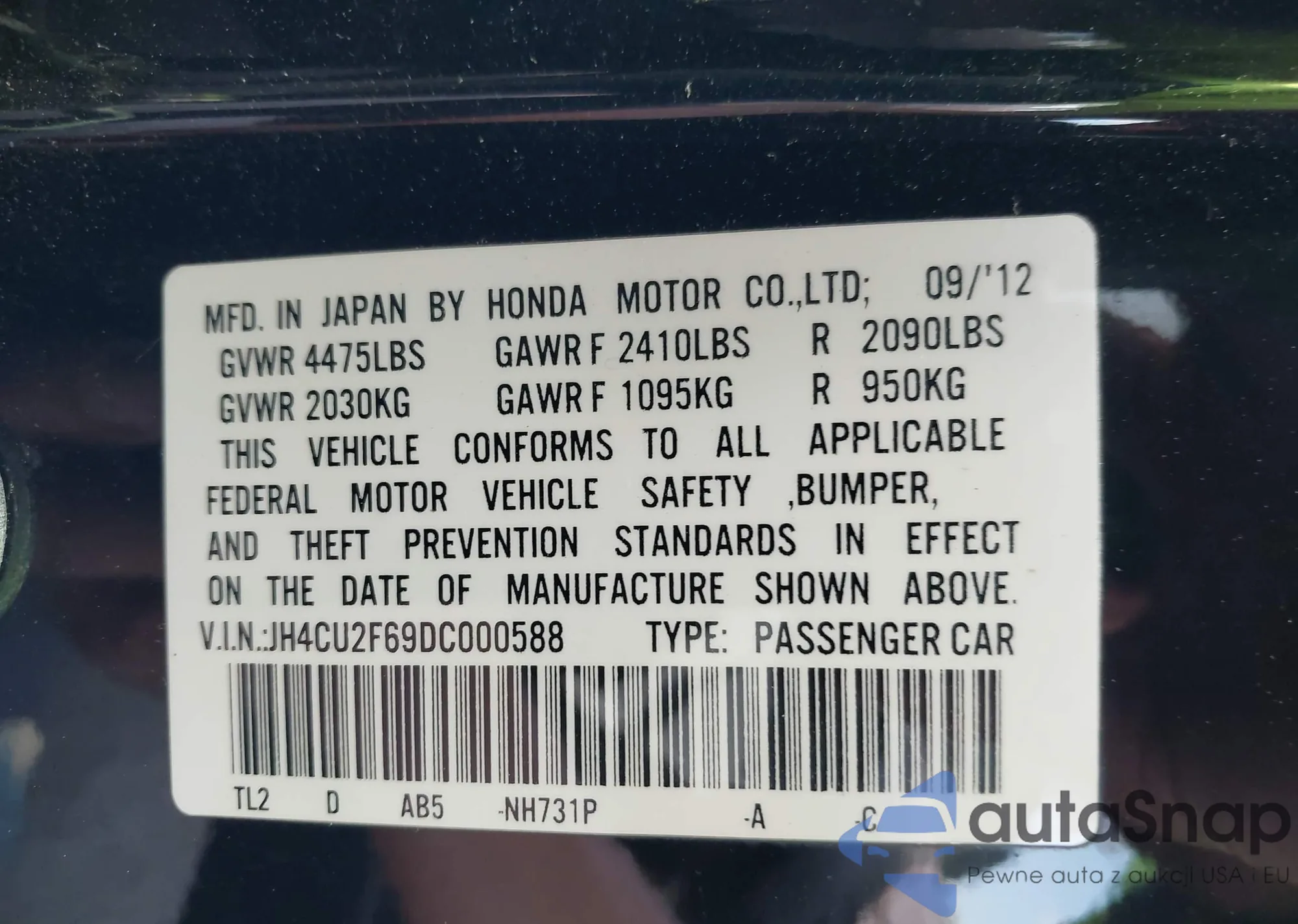 LOT: 42258860 VIN: JH4CU2F69DC000588
