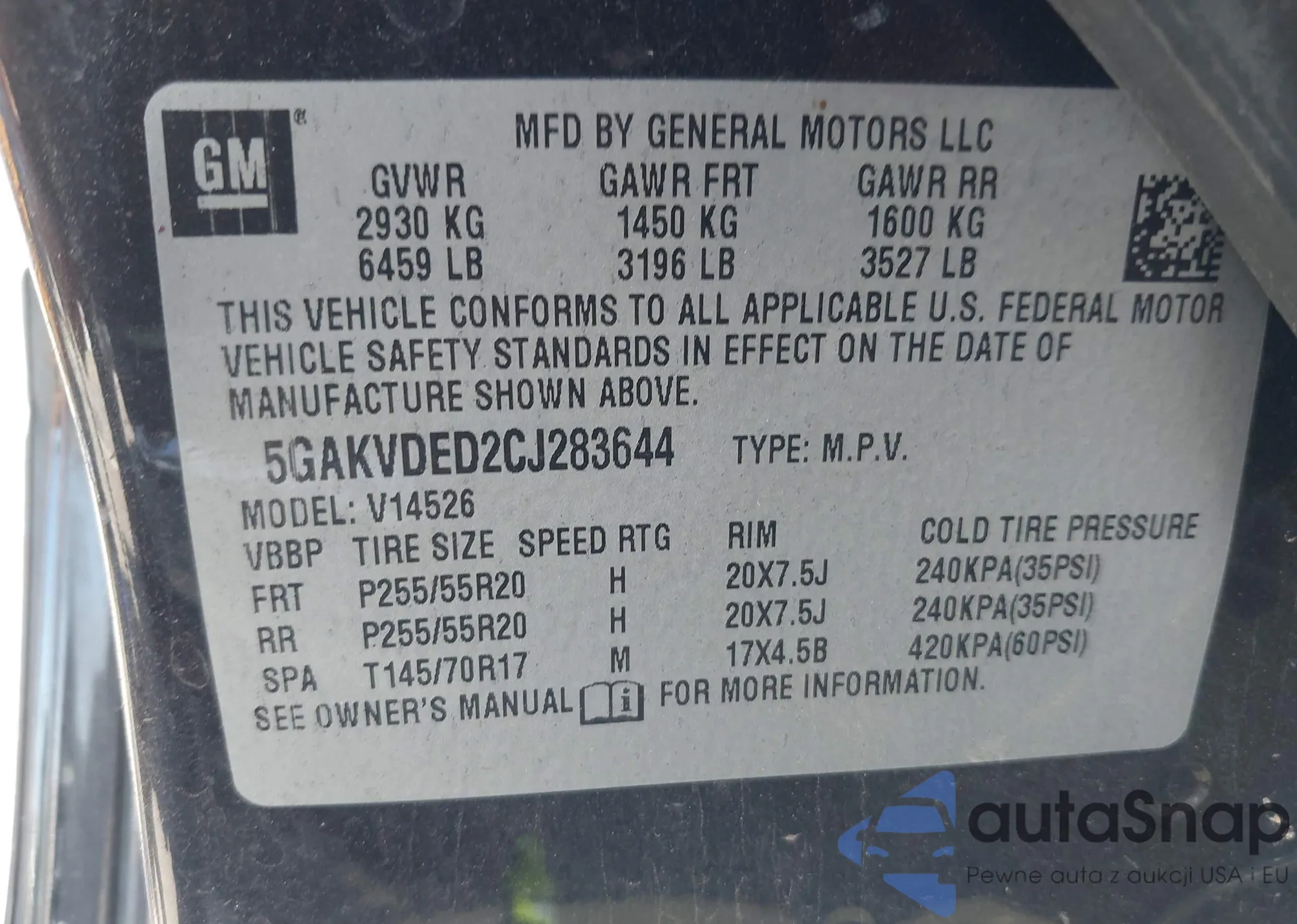 • VIN 5GAKVDED2CJ283644