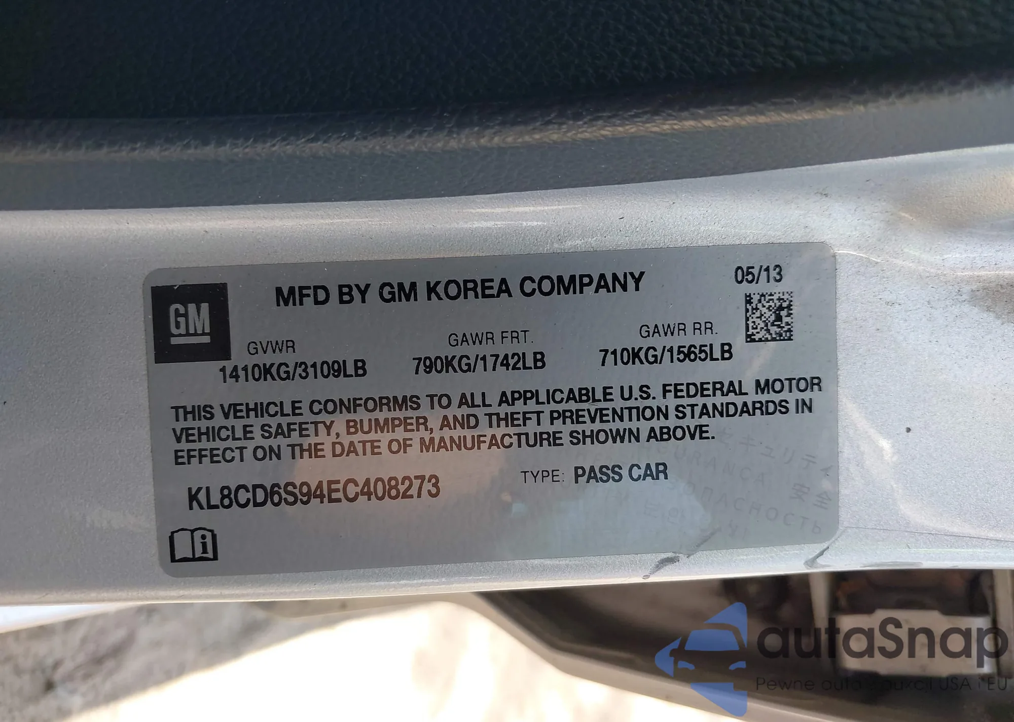 • VIN KL8CD6S94EC408273
