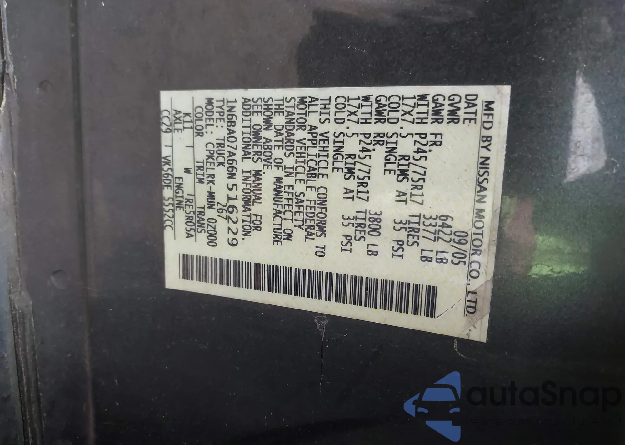 • VIN 1N6BA07A66N516229