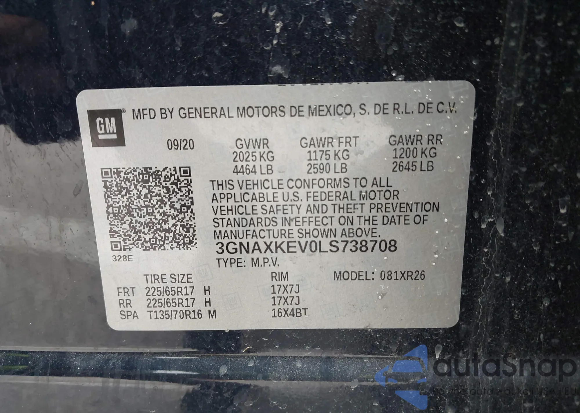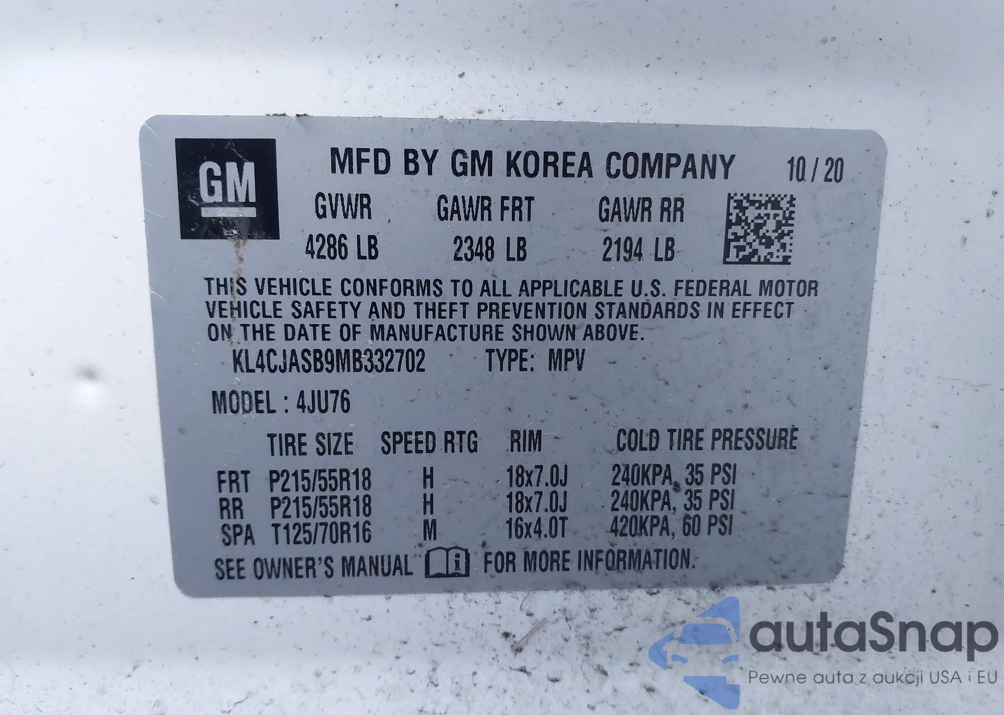 LOT: 42041690 VIN: KL4CJASB9MB332702