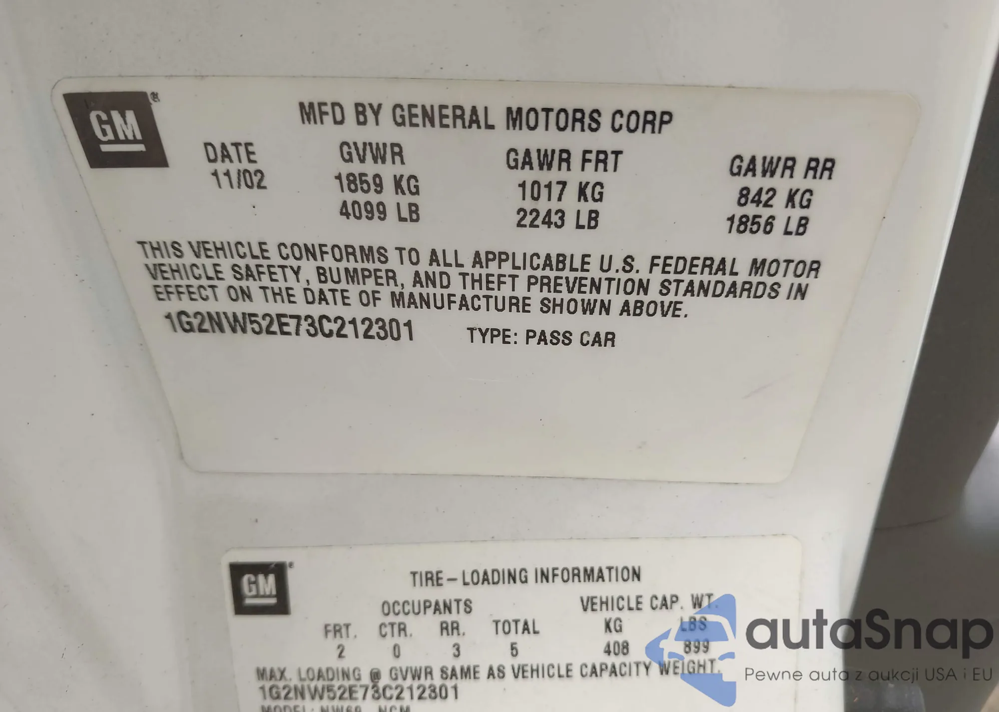 • VIN 1G2NW52E73C212301