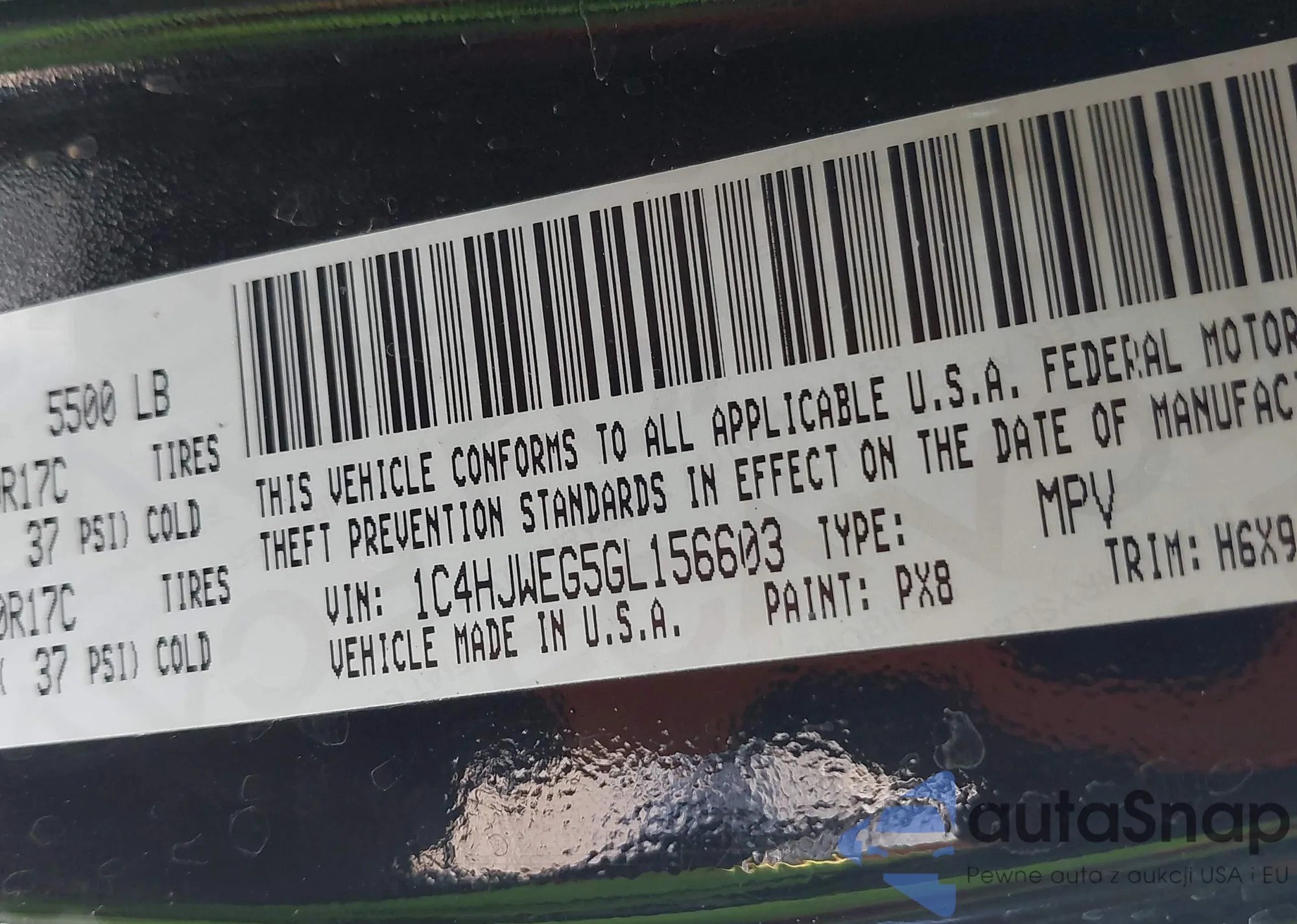 • VIN 1C4HJWEG5GL156603