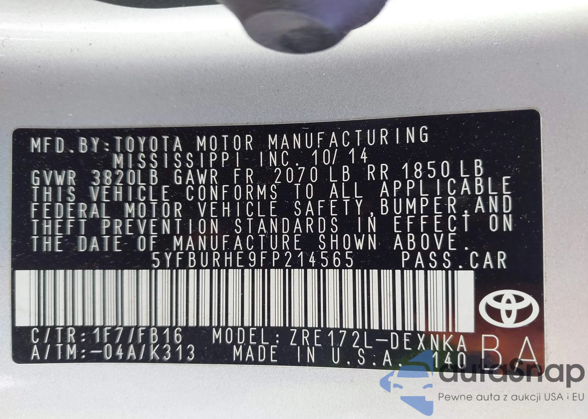 • VIN 1N4AL3AP6FC413918