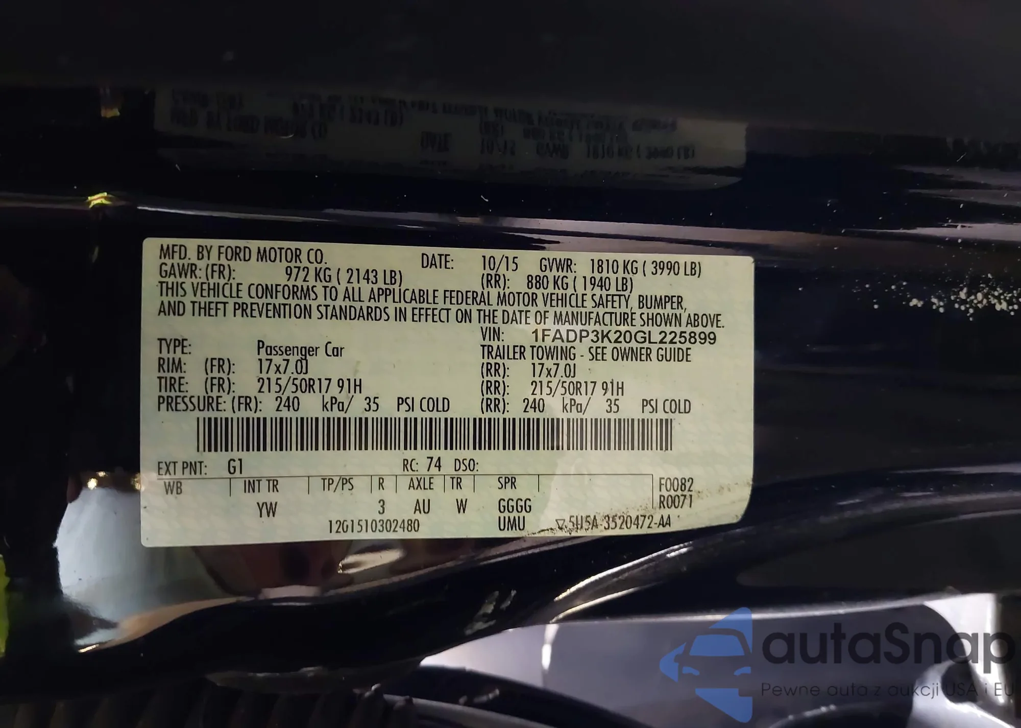 • VIN 1FADP3K20GL225899