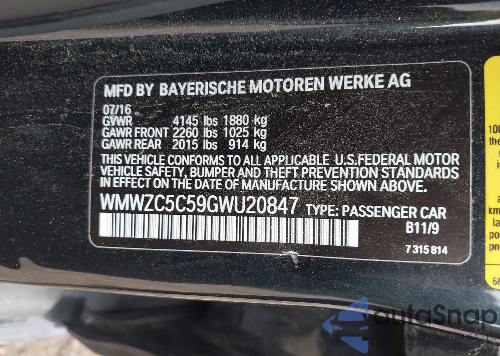 • VIN WBAKC8C54BC431851