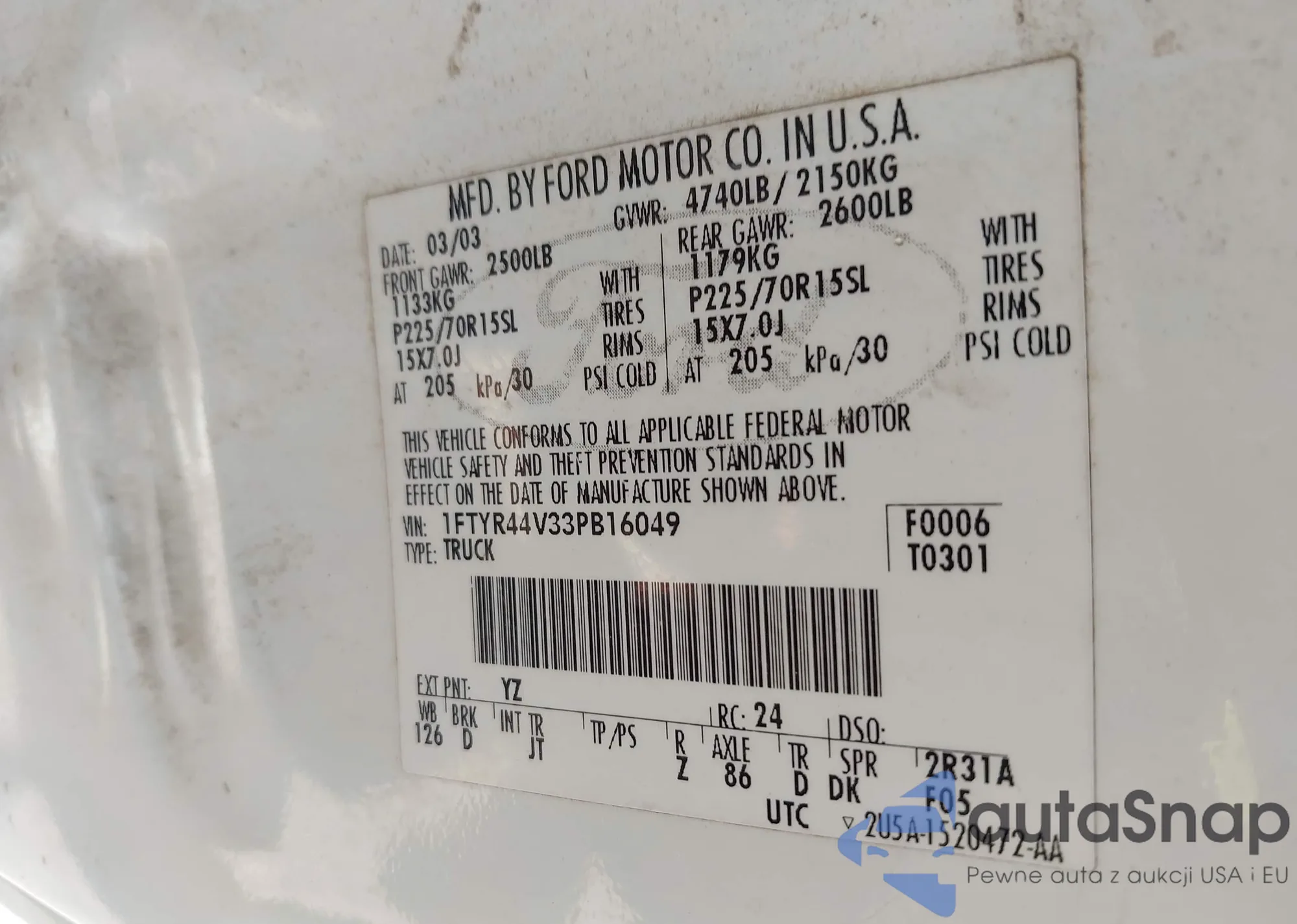 • VIN 1FTYR44V33PB16049
