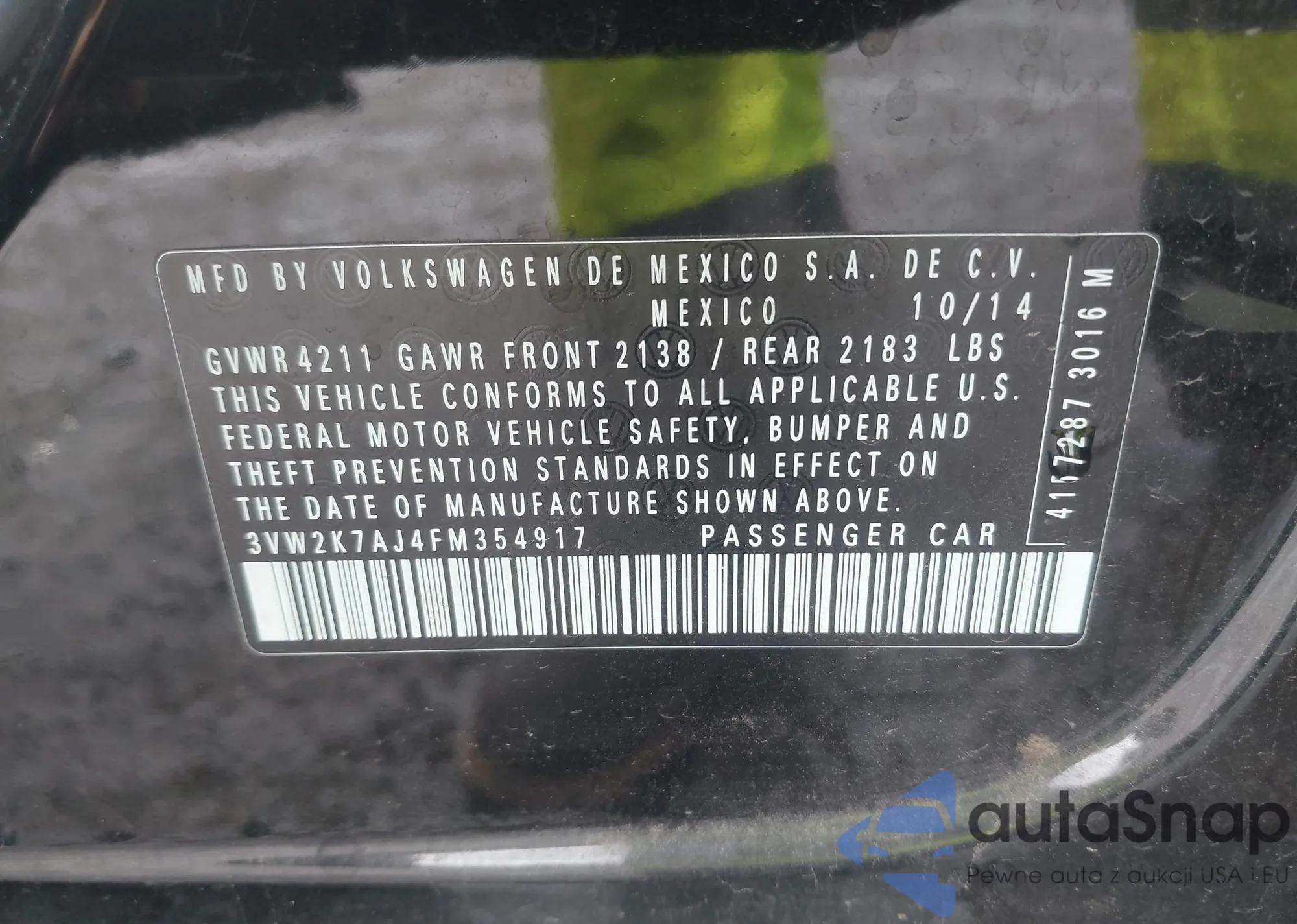 • VIN 3VW2K7AJ4FM354917
