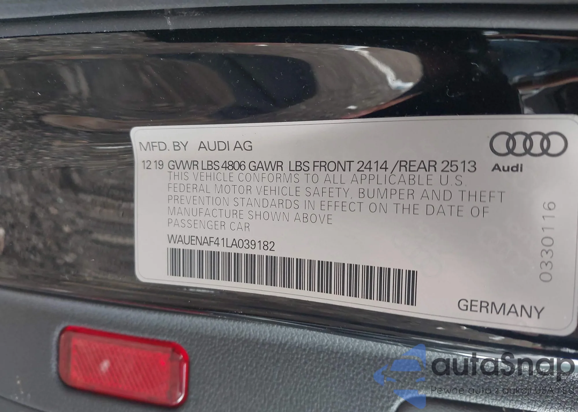 LOT: 41865139 VIN: WAUENAF41LA039182