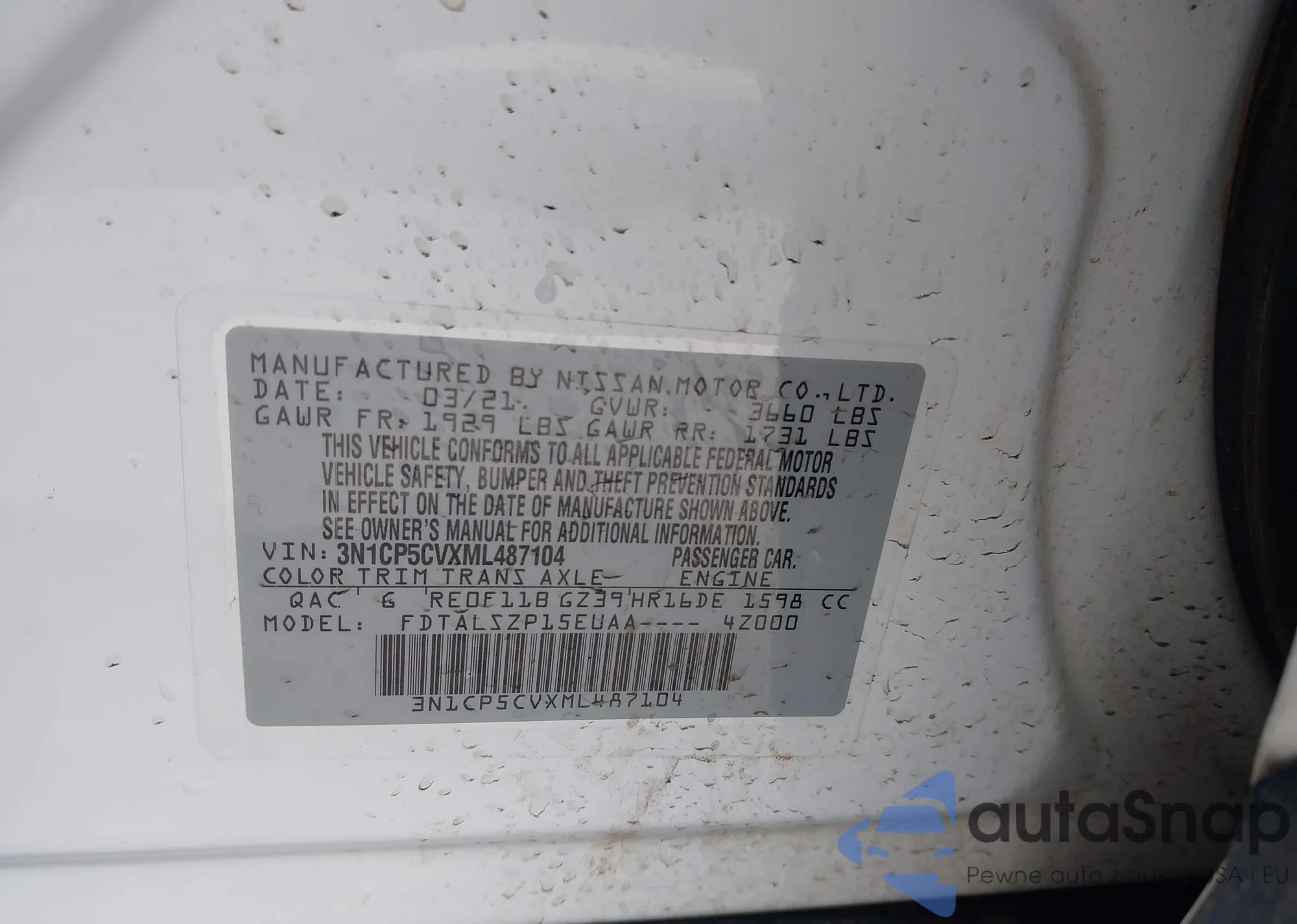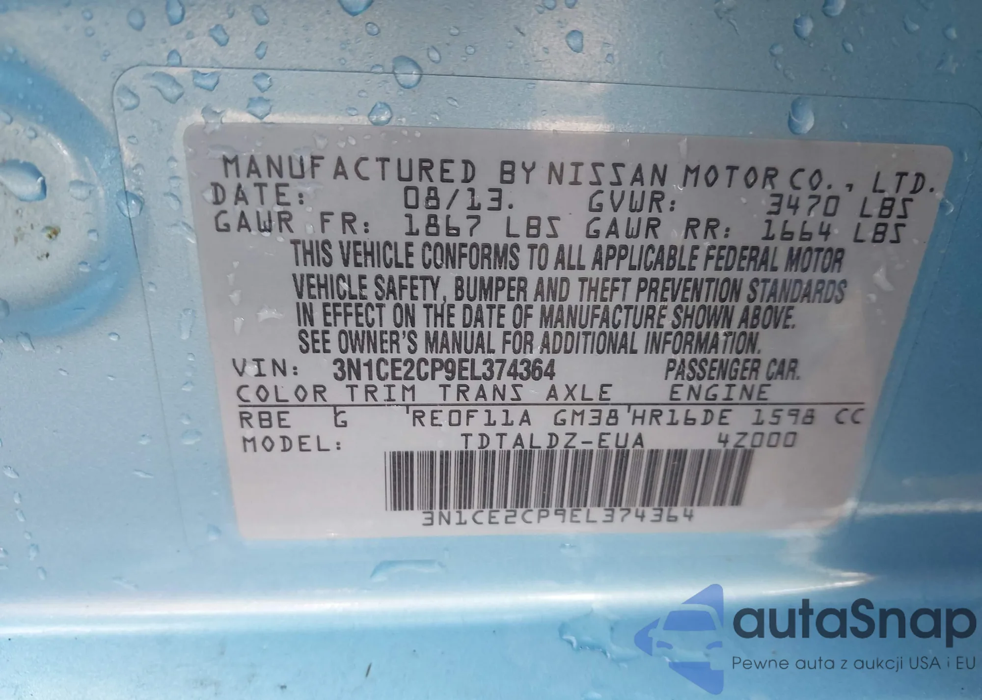 • VIN 3N1CE2CP9EL374364