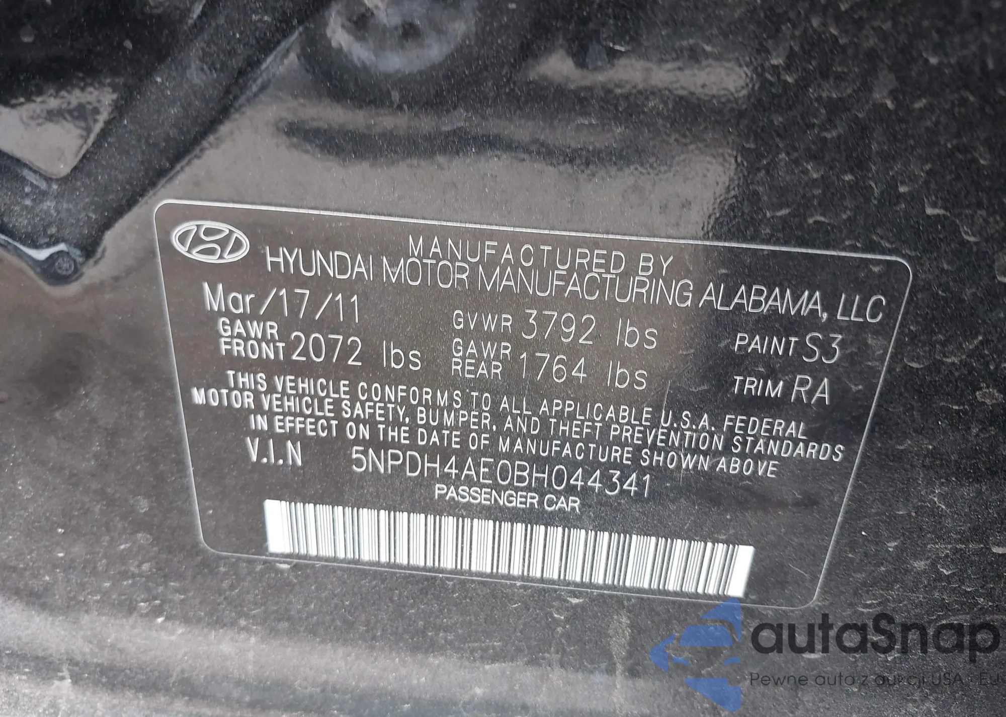 • VIN 5NPDH4AE0BH044341