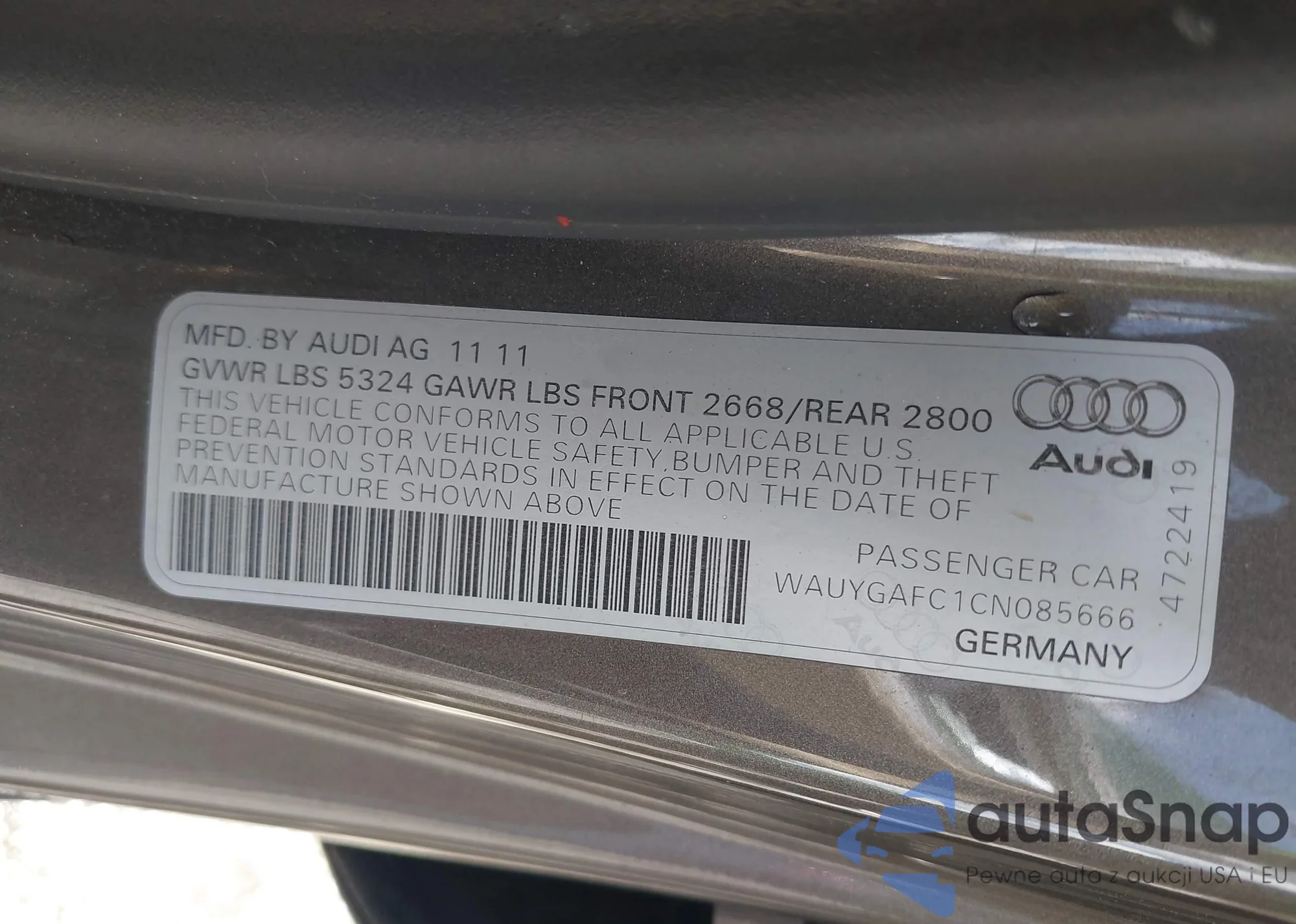 • VIN WAUYGAFC1CN085666