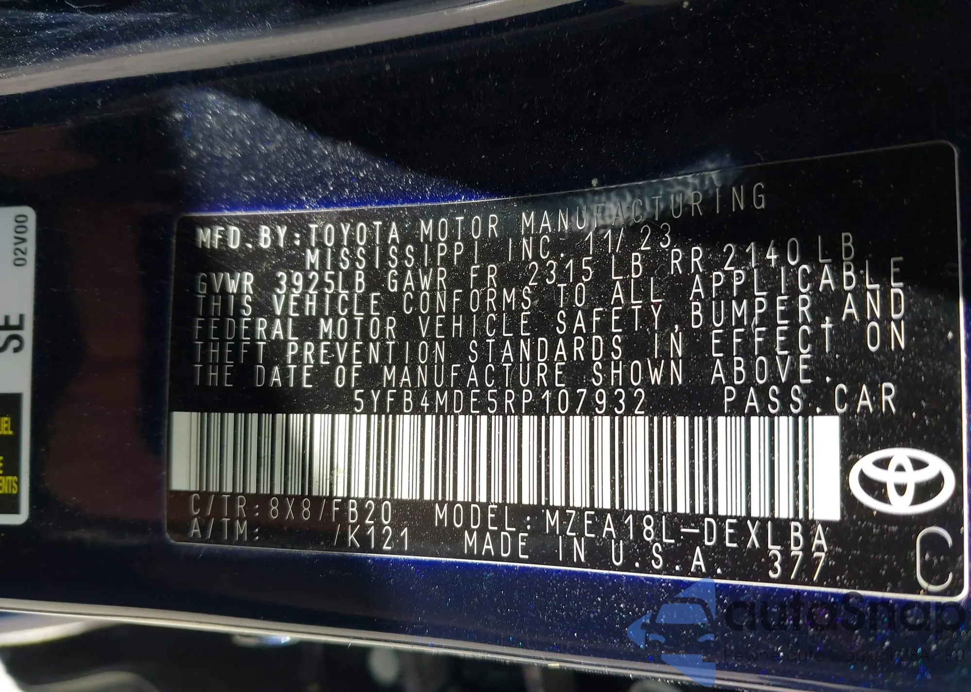 LOT: 42247924 VIN: JTDKN3DU1B0271175