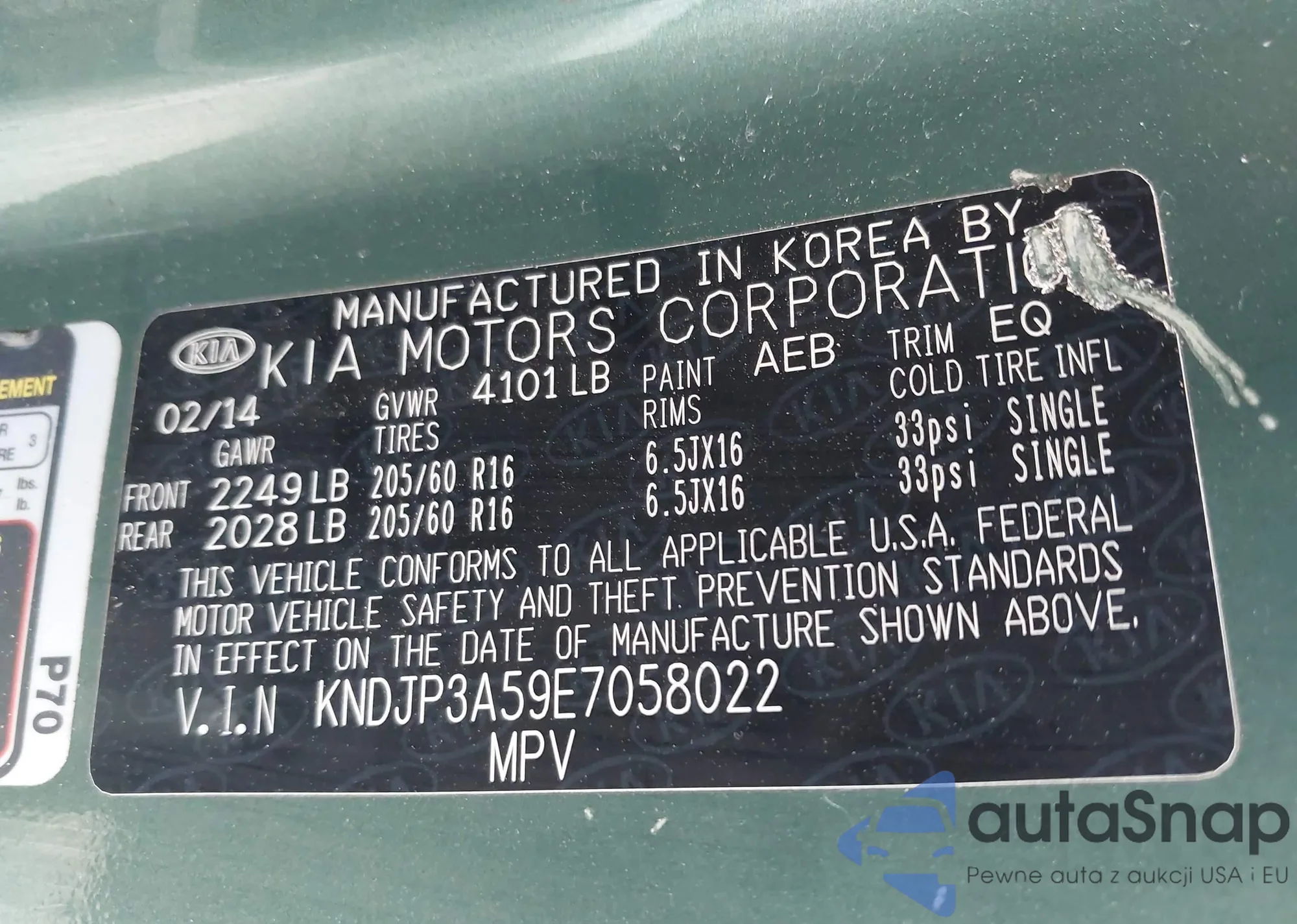 LOT: 42199770 VIN: KNDJP3A59E7058022