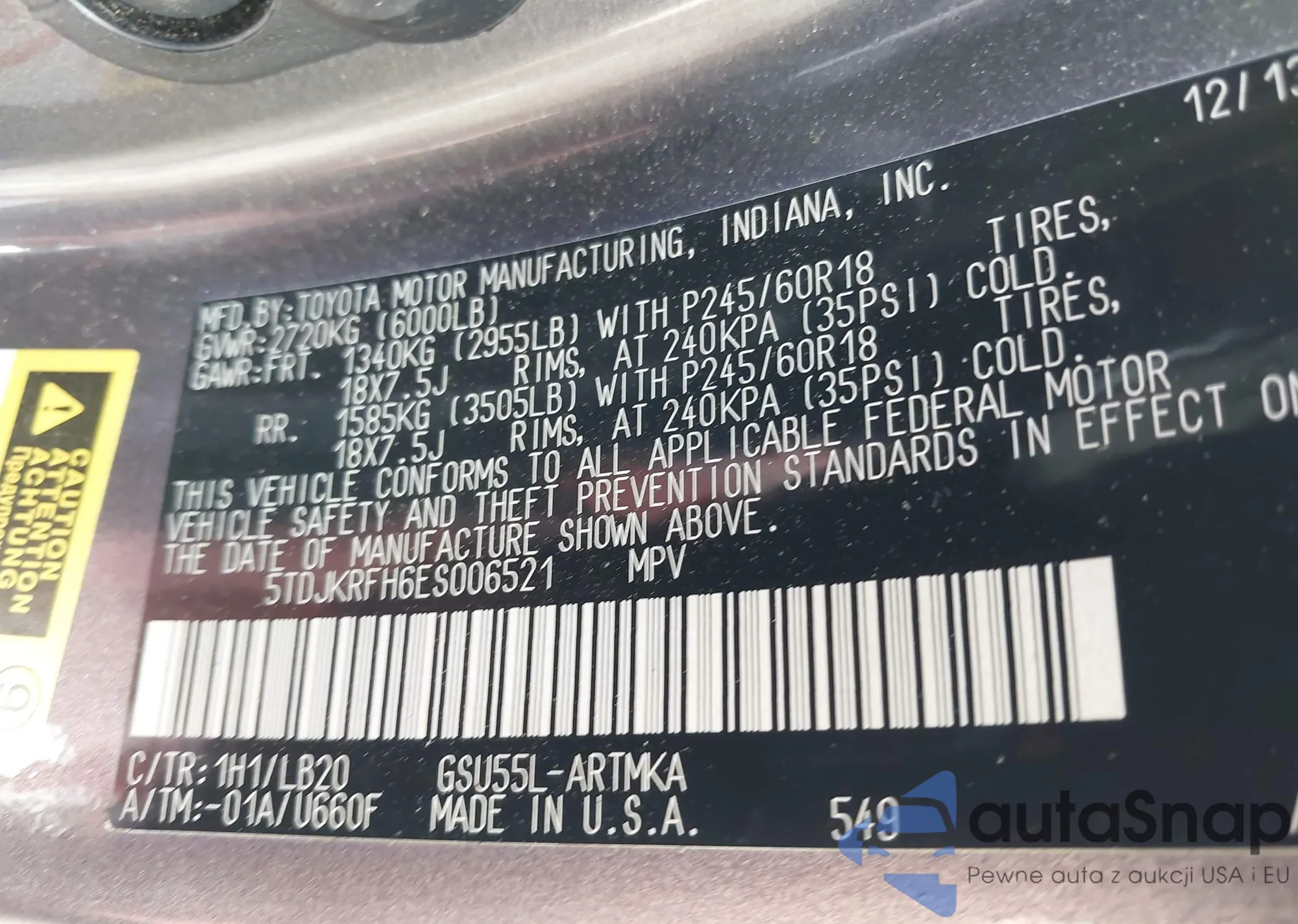 • VIN 5TDJKRFH6ES006521