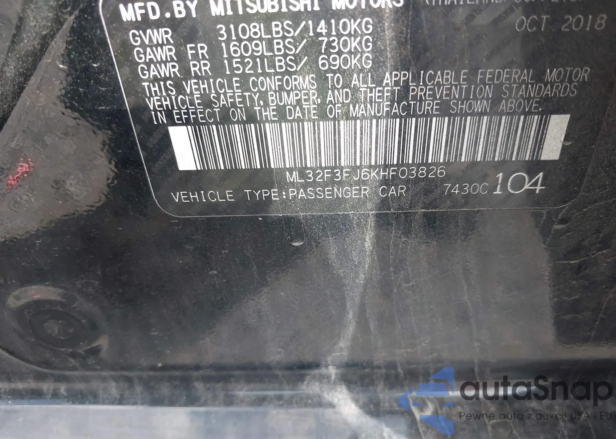 LOT: 42134697 VIN: ML32F3FJ6KHF03826