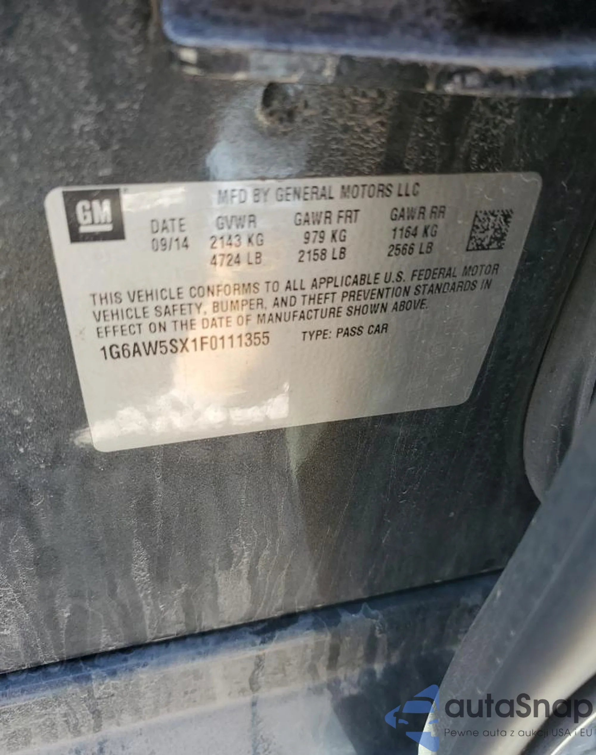 LOT: 55917915 VIN: 1G6AW5SX1F0111355