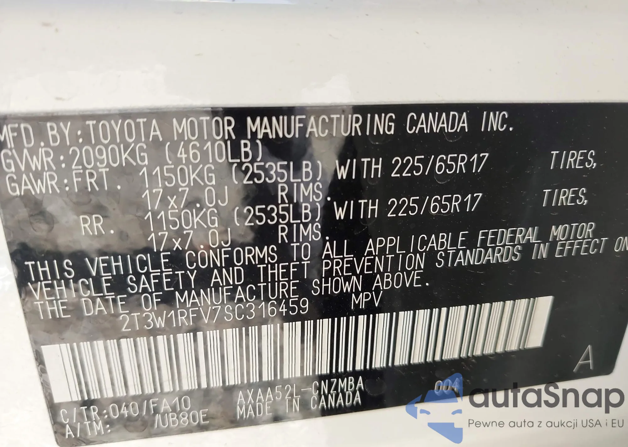 • VIN 2T3W1RFV7SC316459