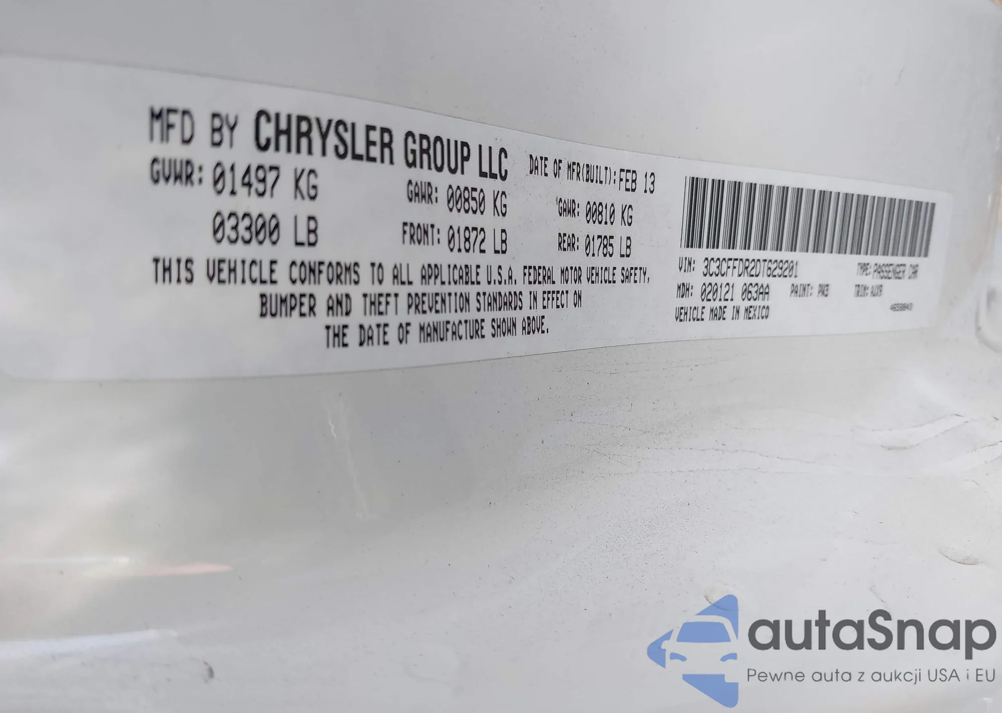 LOT: 42233310 VIN: 3C3CFFDR2DT629201