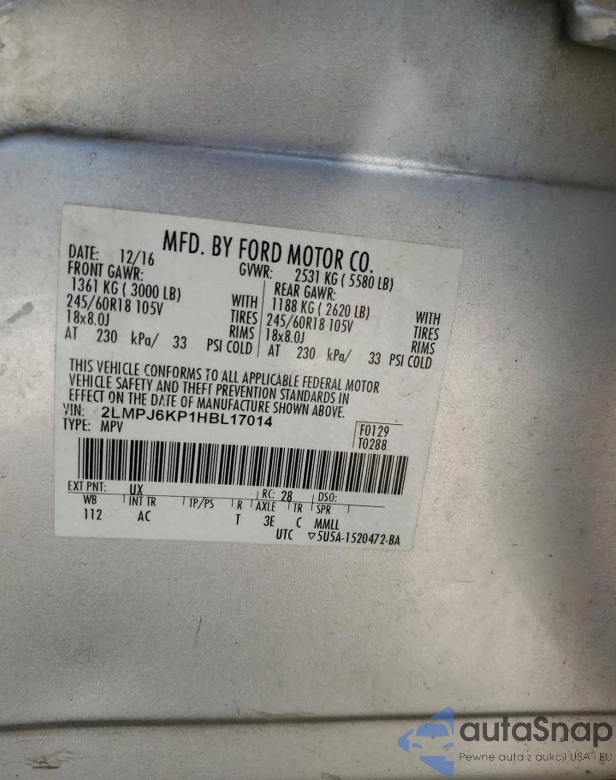 LOT: 51205875 VIN: JHMZC5F11JC015990