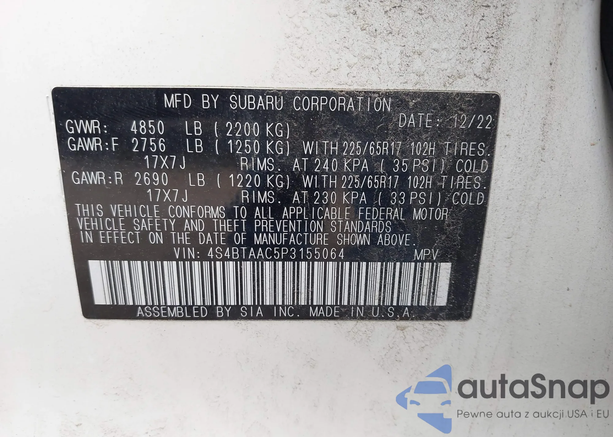 • VIN 4S4BTAAC5P3155064