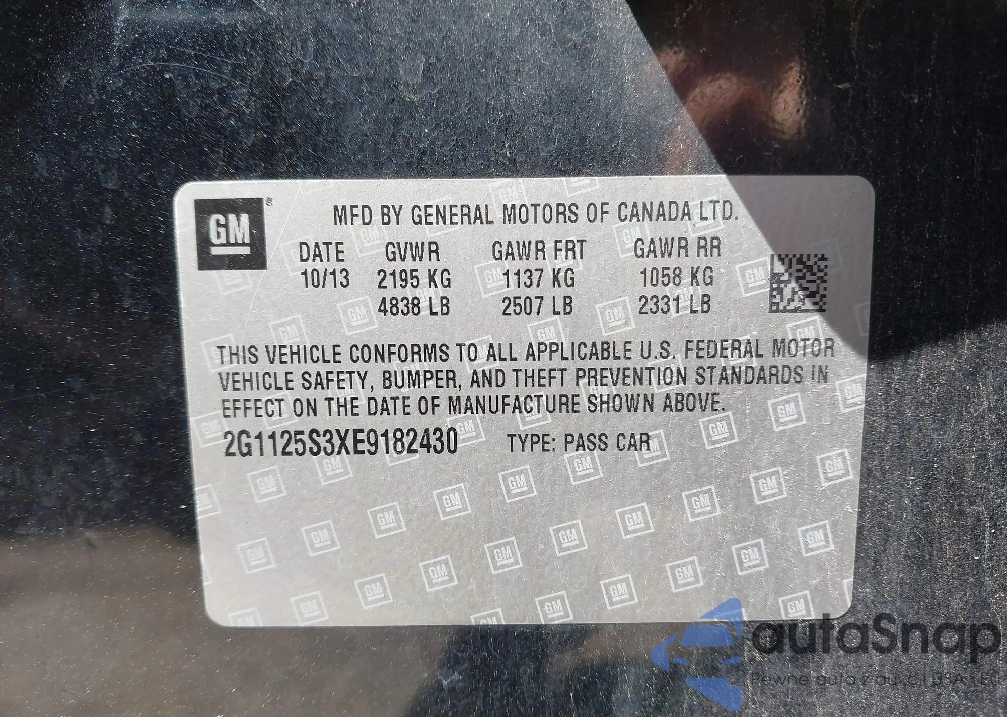 • VIN 2G1125S3XE9182430