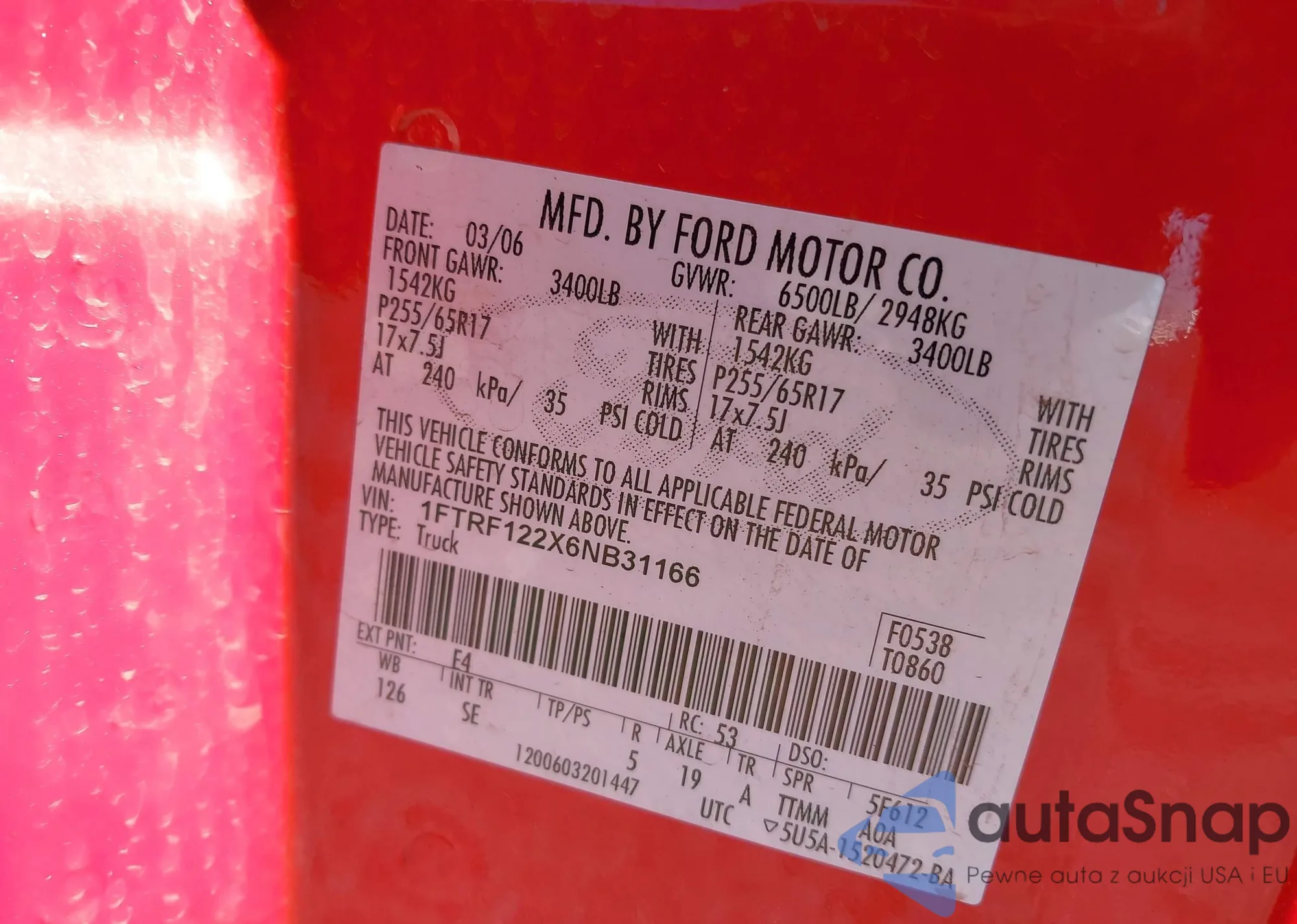 LOT: 41541941 VIN: 1FTRF122X6NB31166
