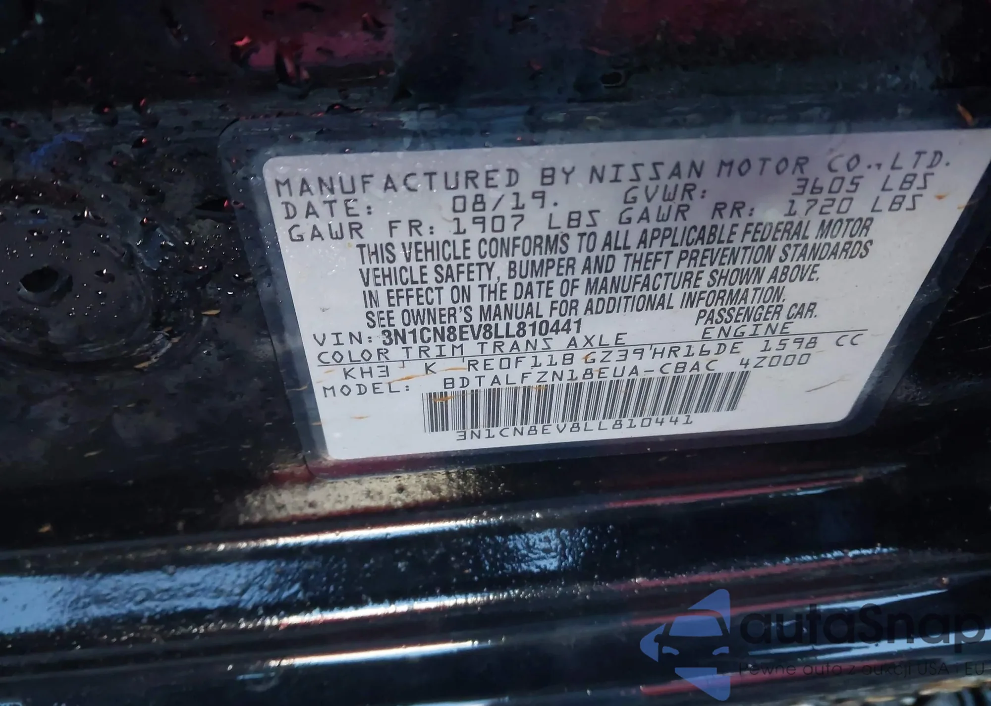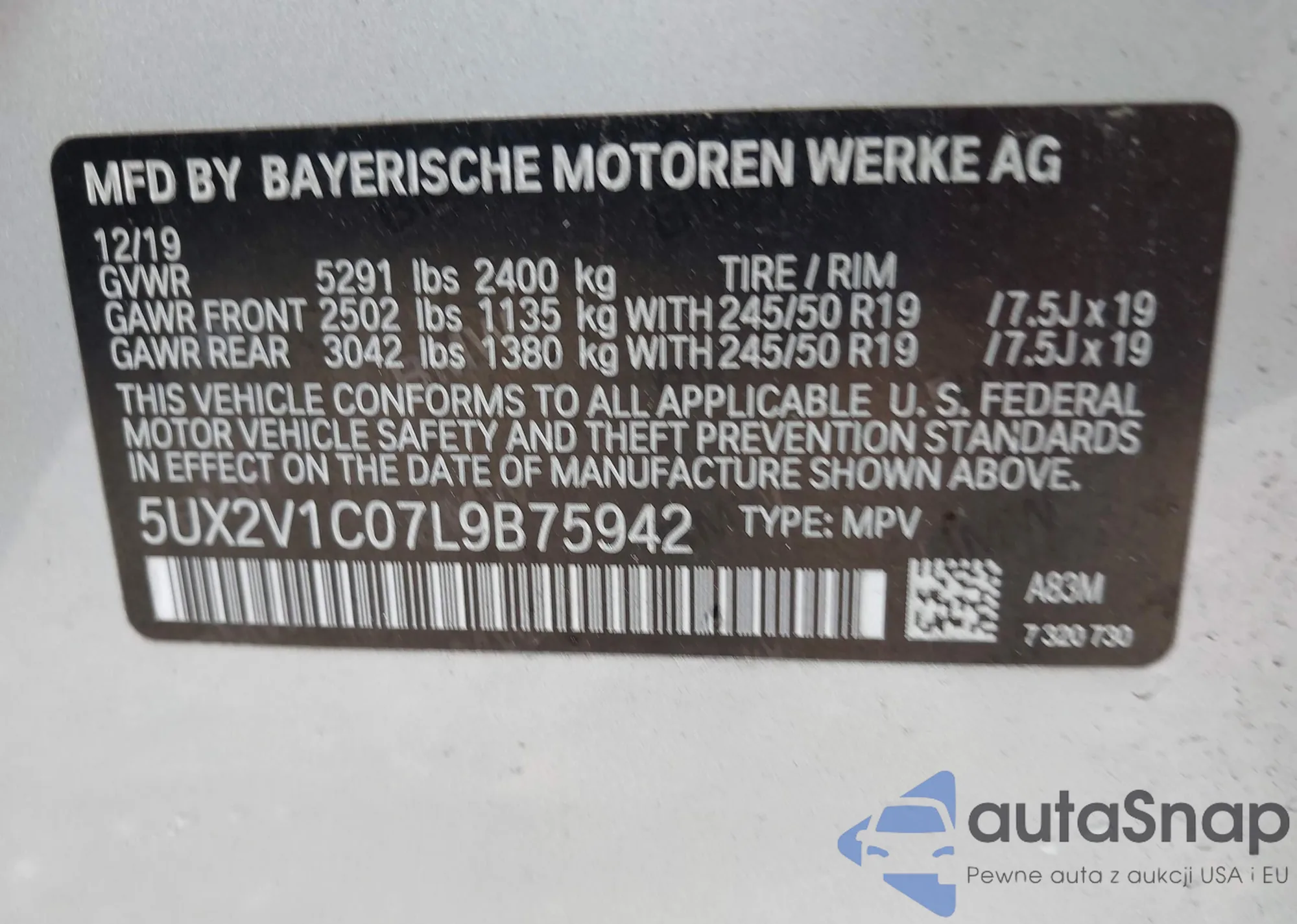 LOT: 41947780 VIN: 5UX2V1C07L9B75942