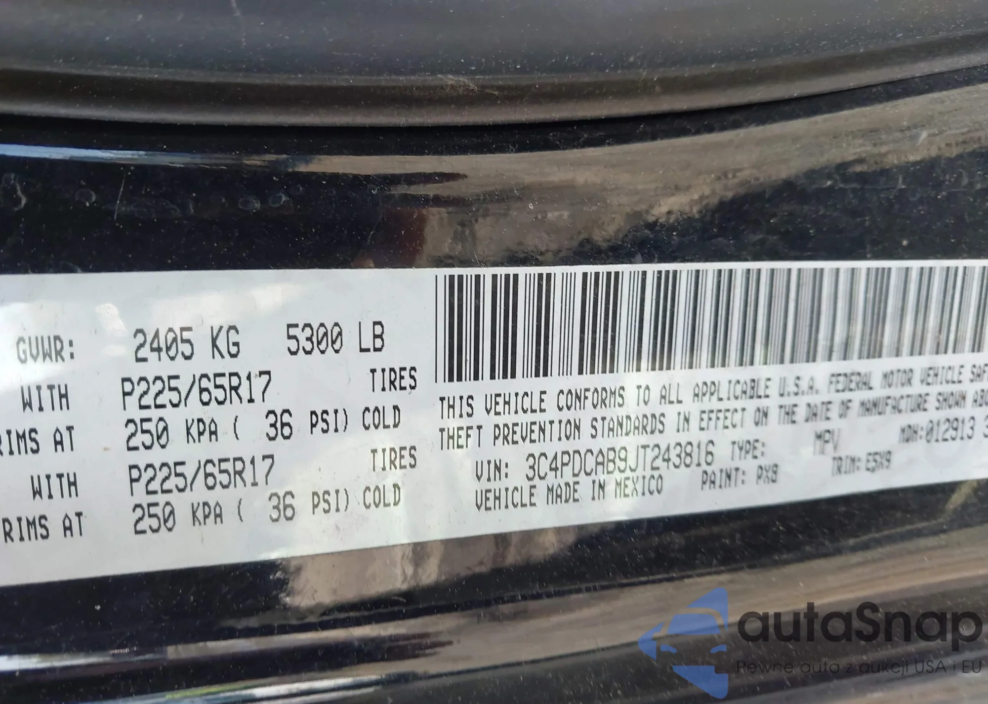 • VIN 3C4PDCAB9JT243816
